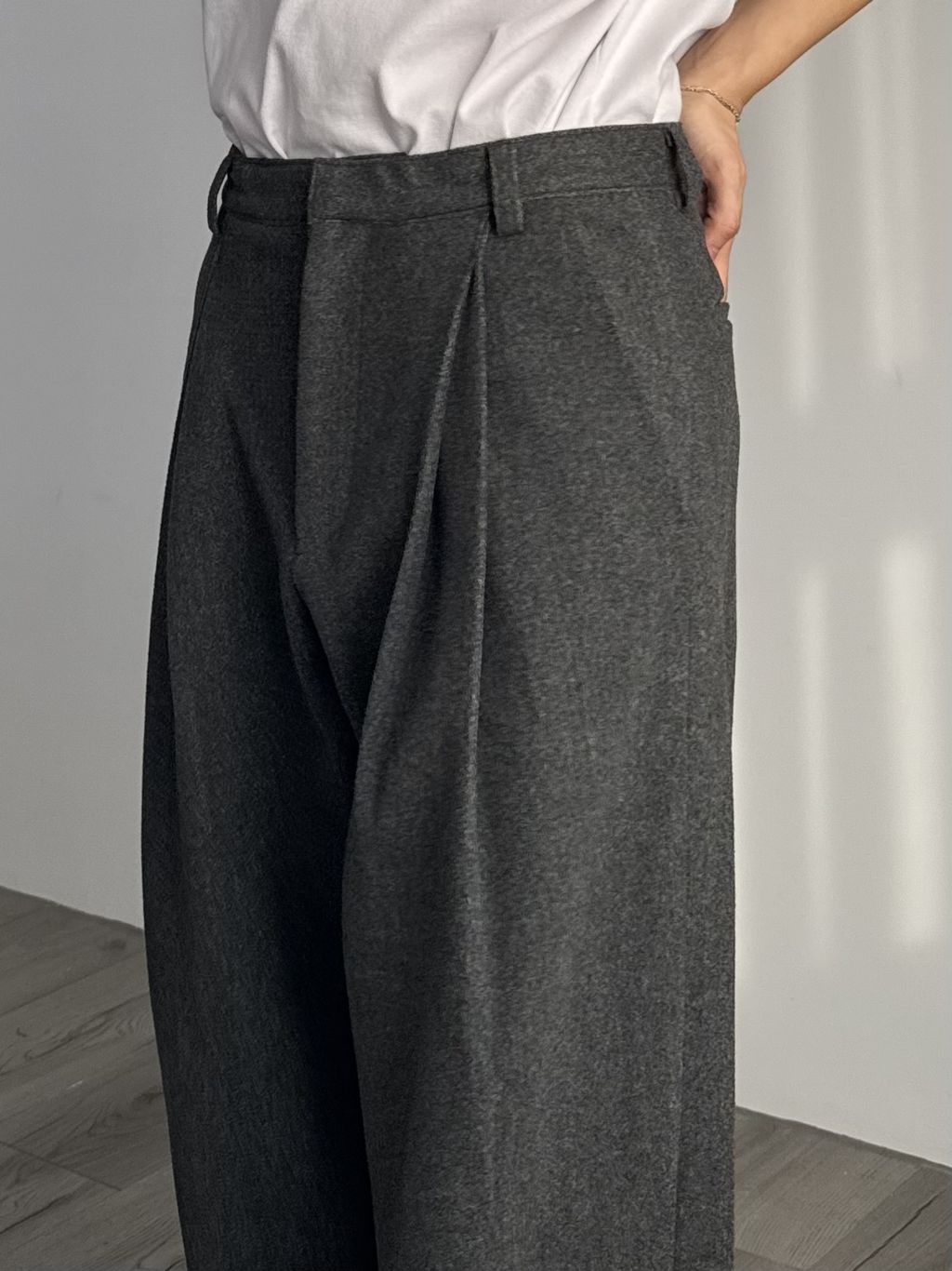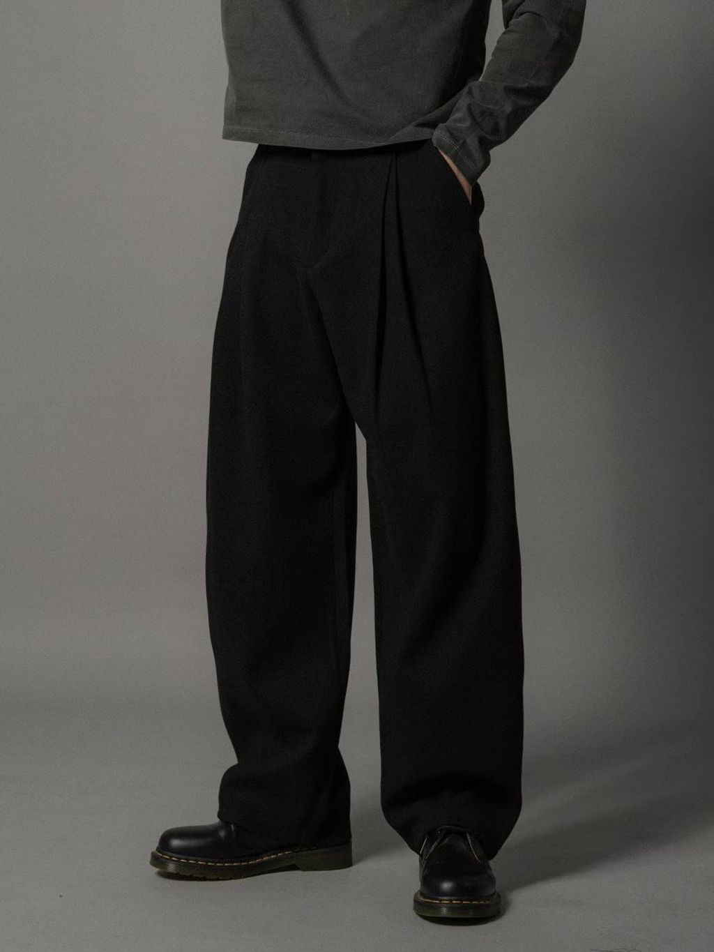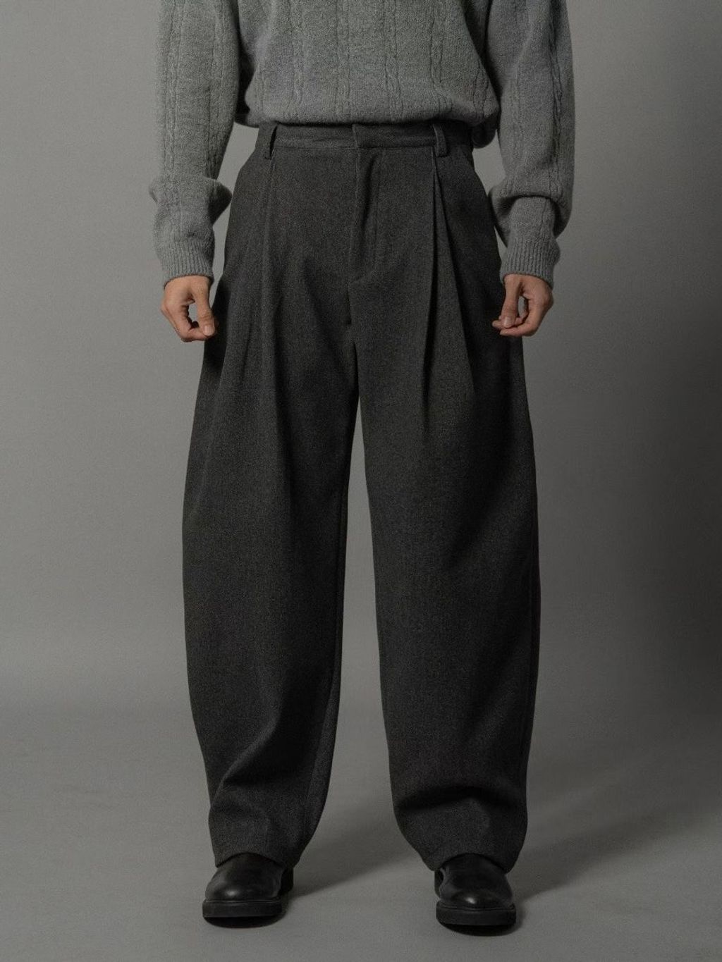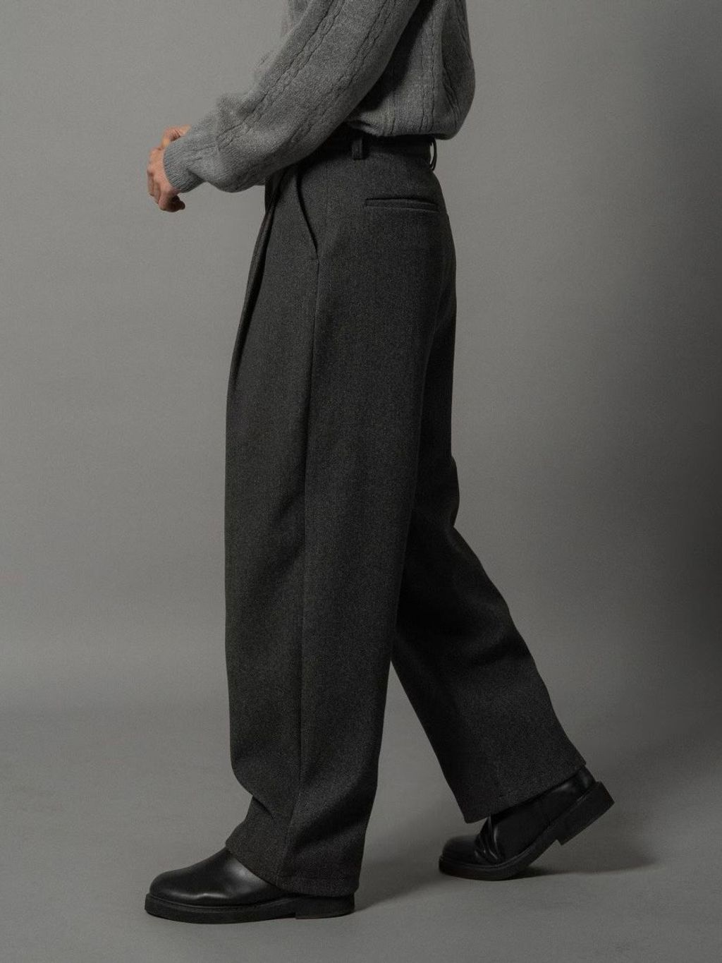 毛呢打褶西裝褲