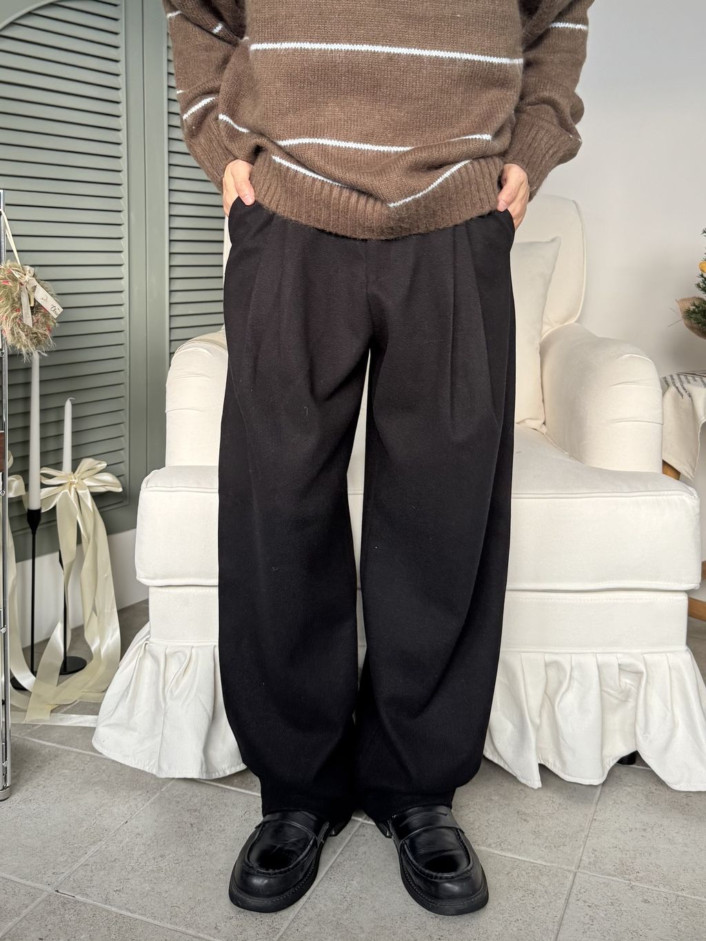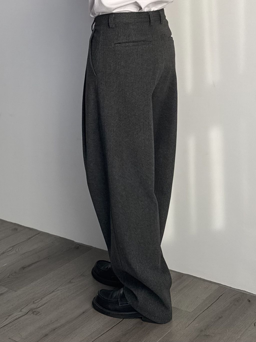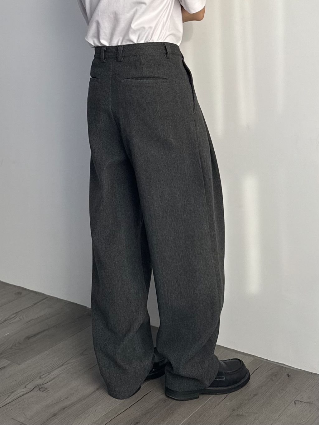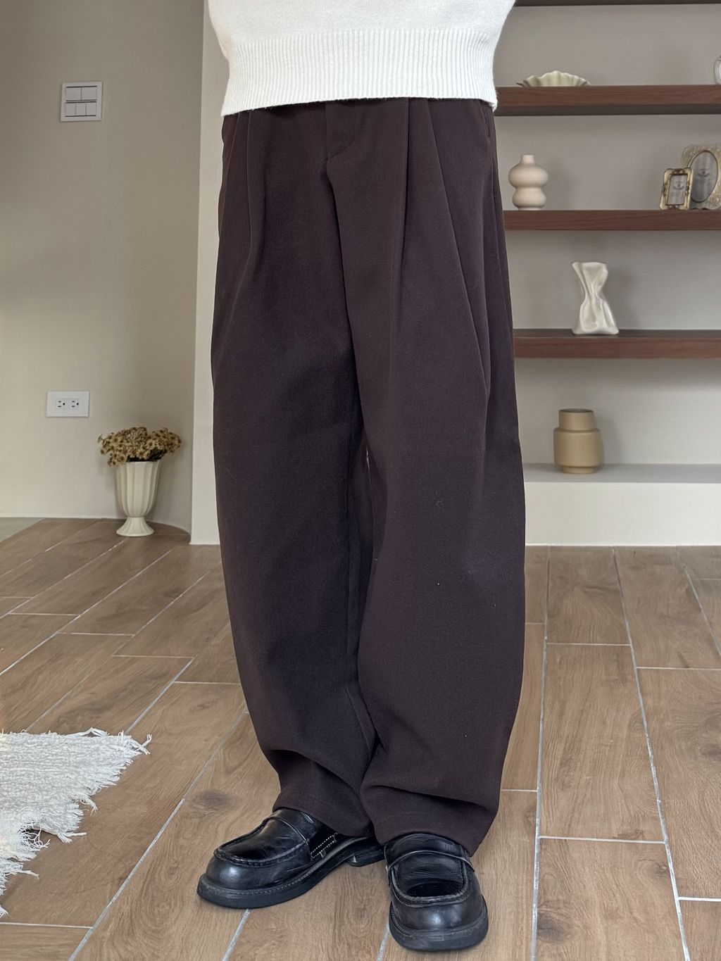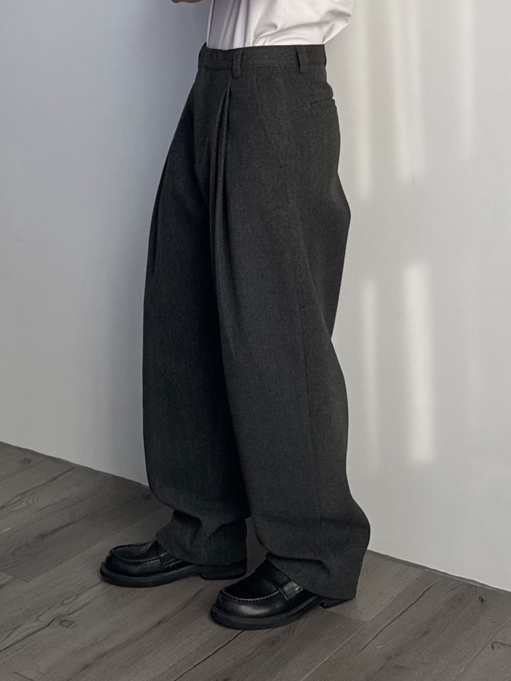 毛呢打褶西裝褲