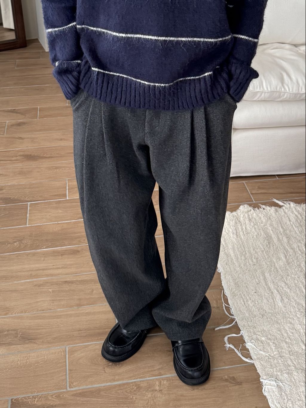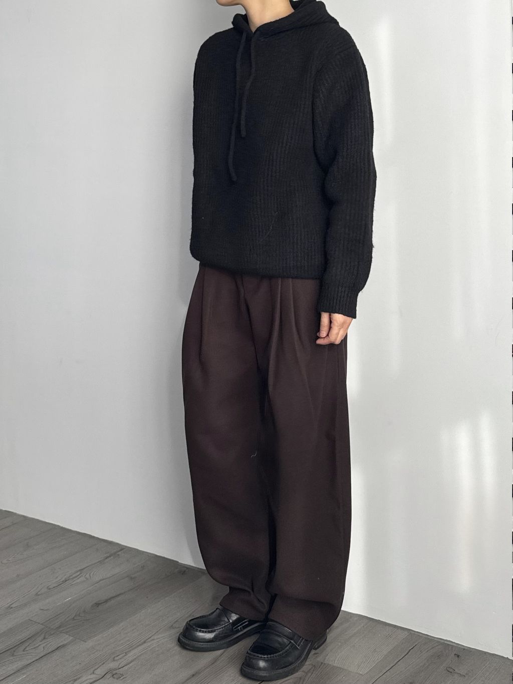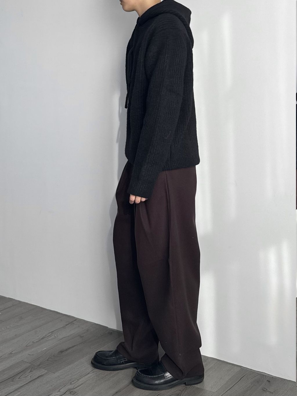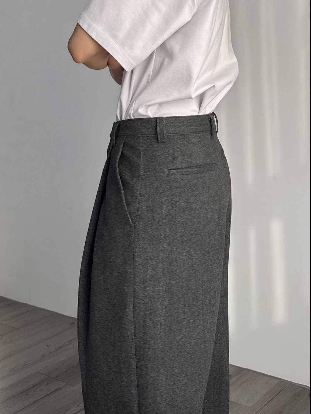 毛呢打褶西裝褲