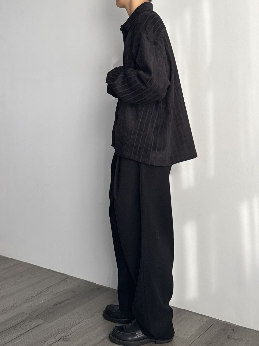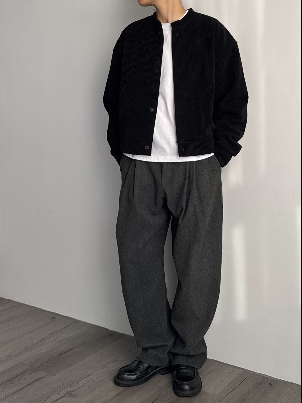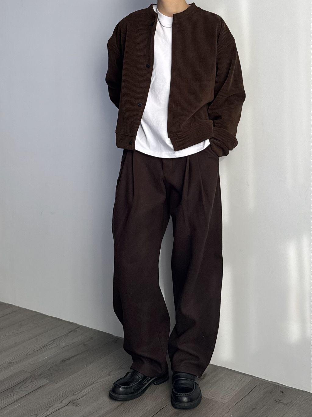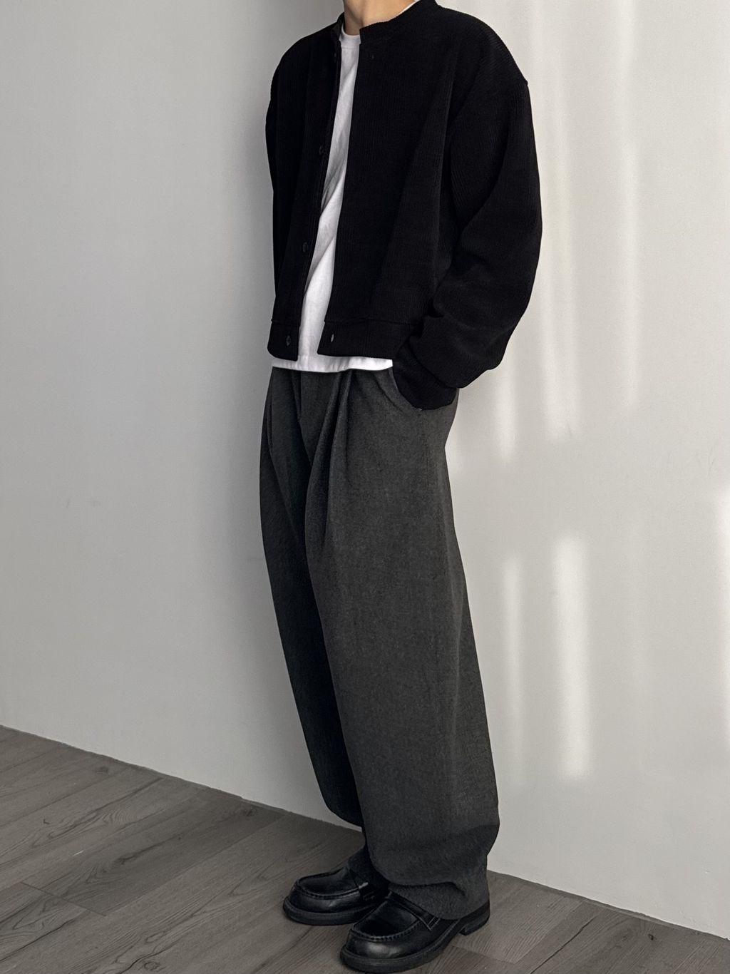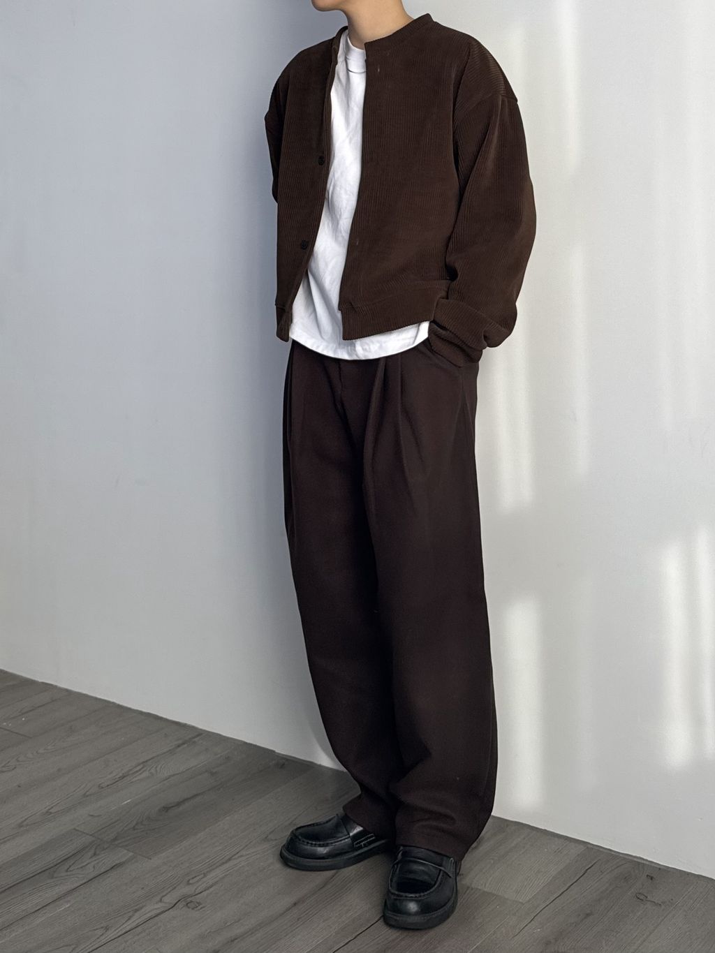 毛呢打褶西裝褲