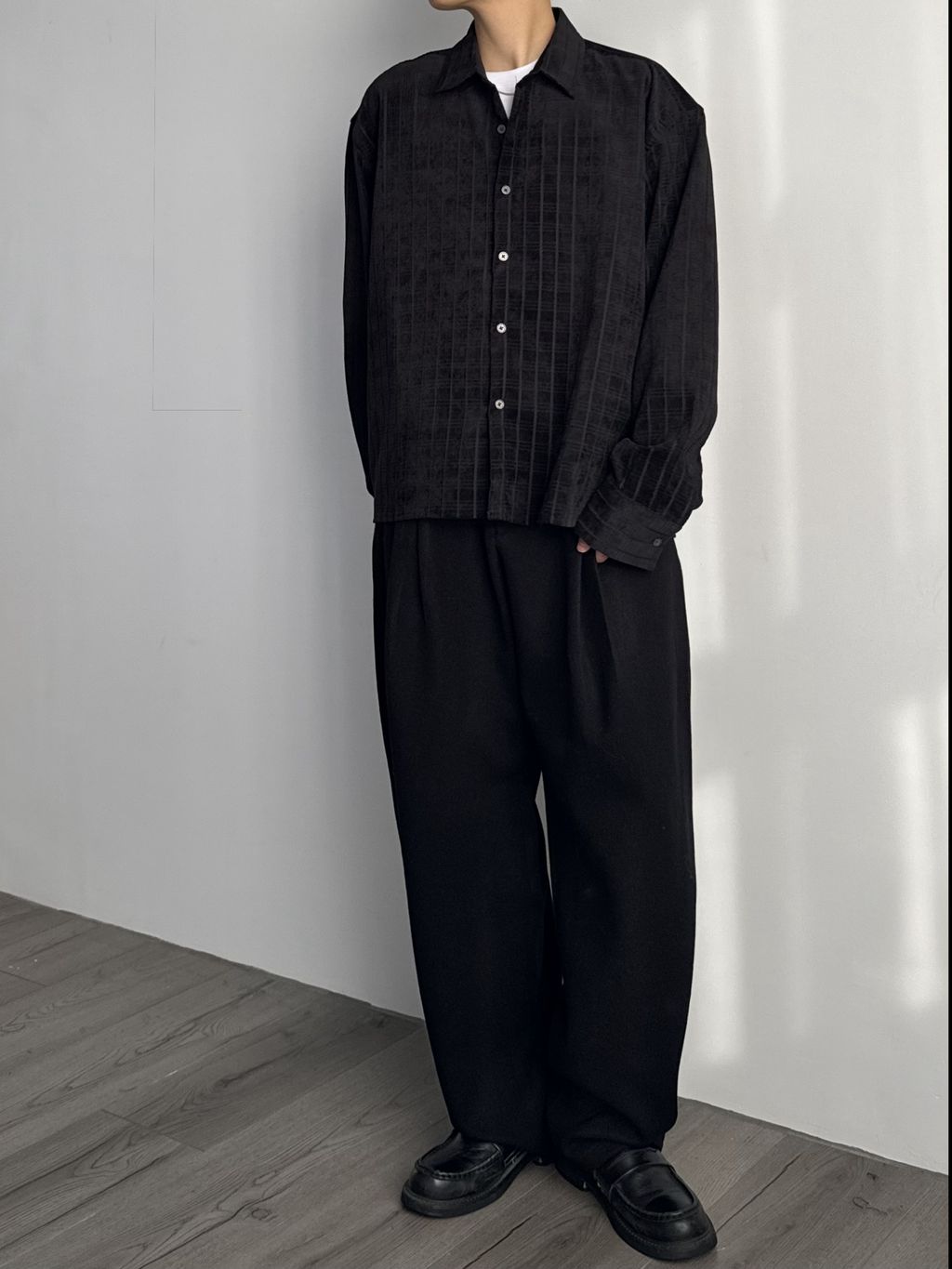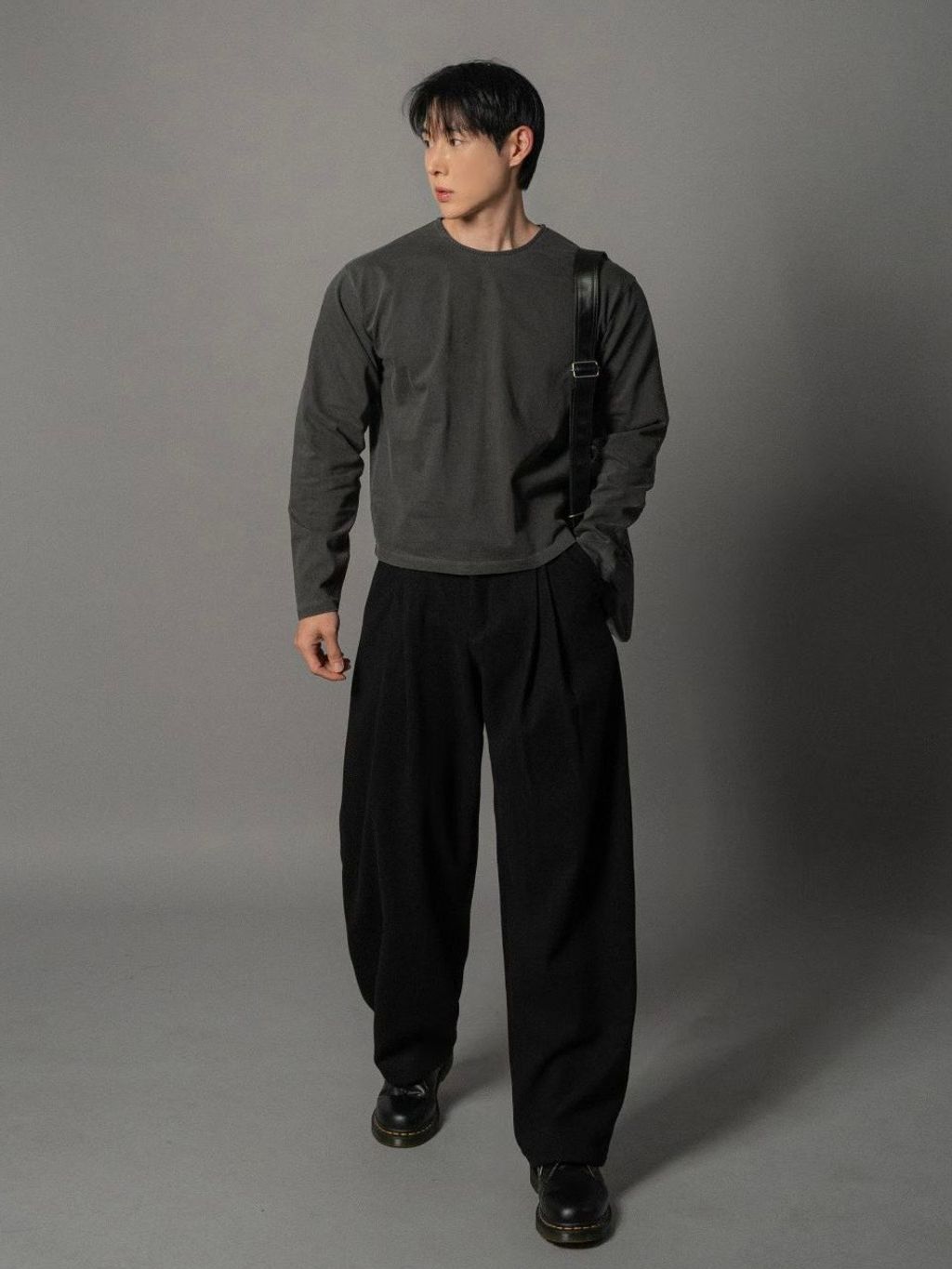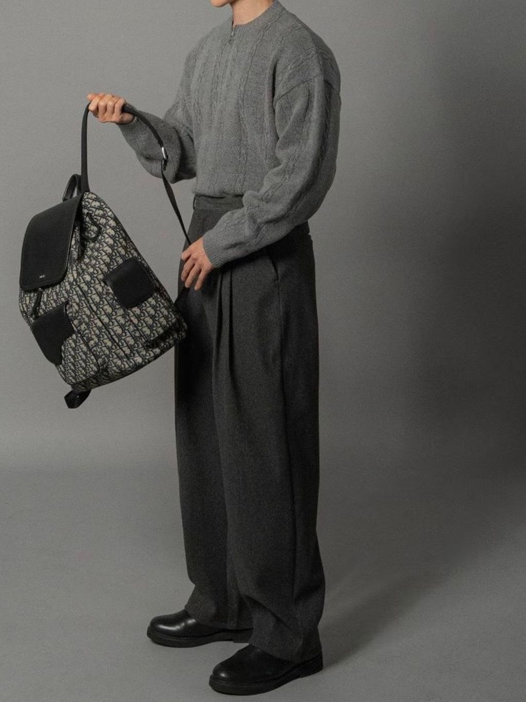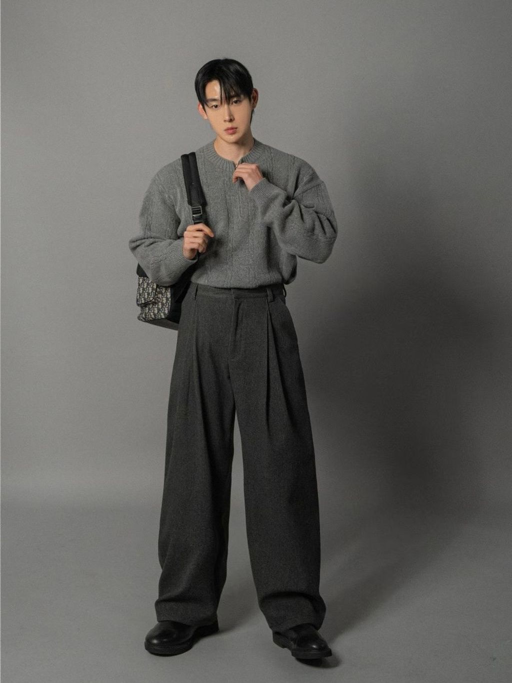 毛呢打褶西裝褲