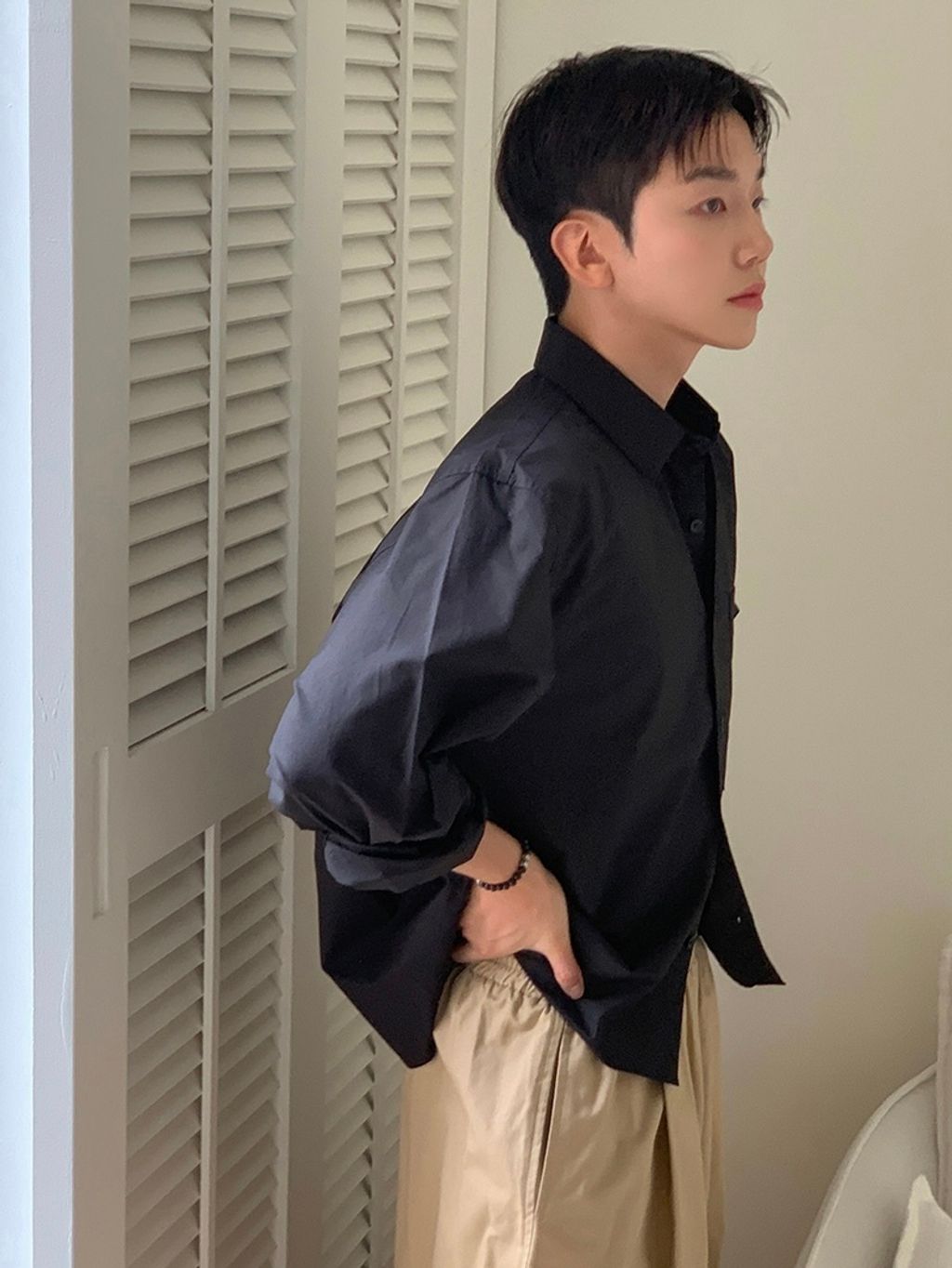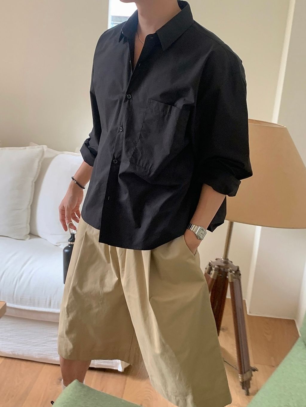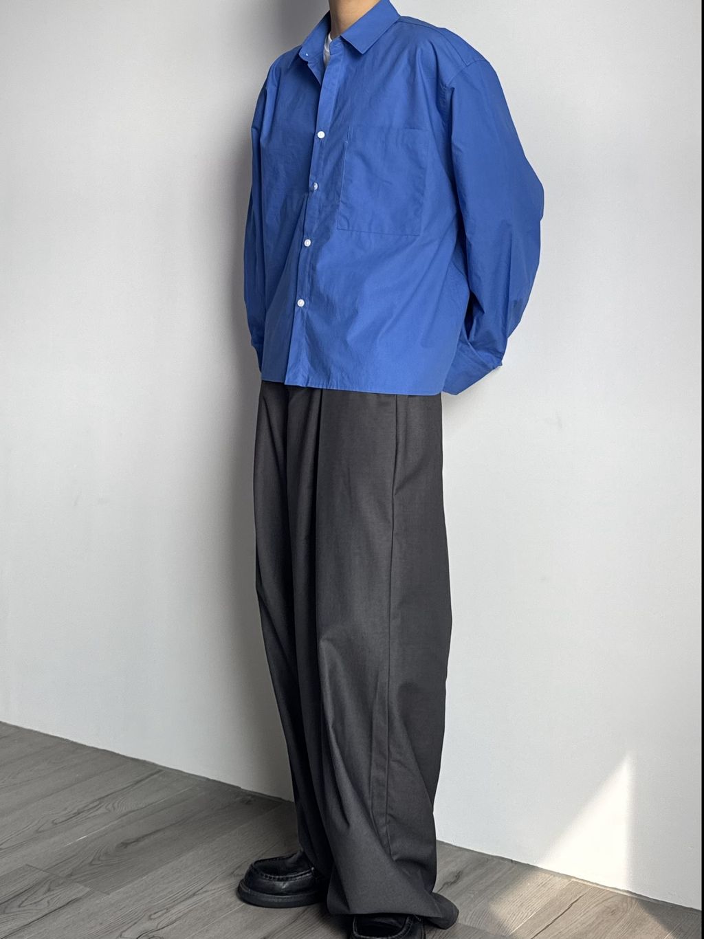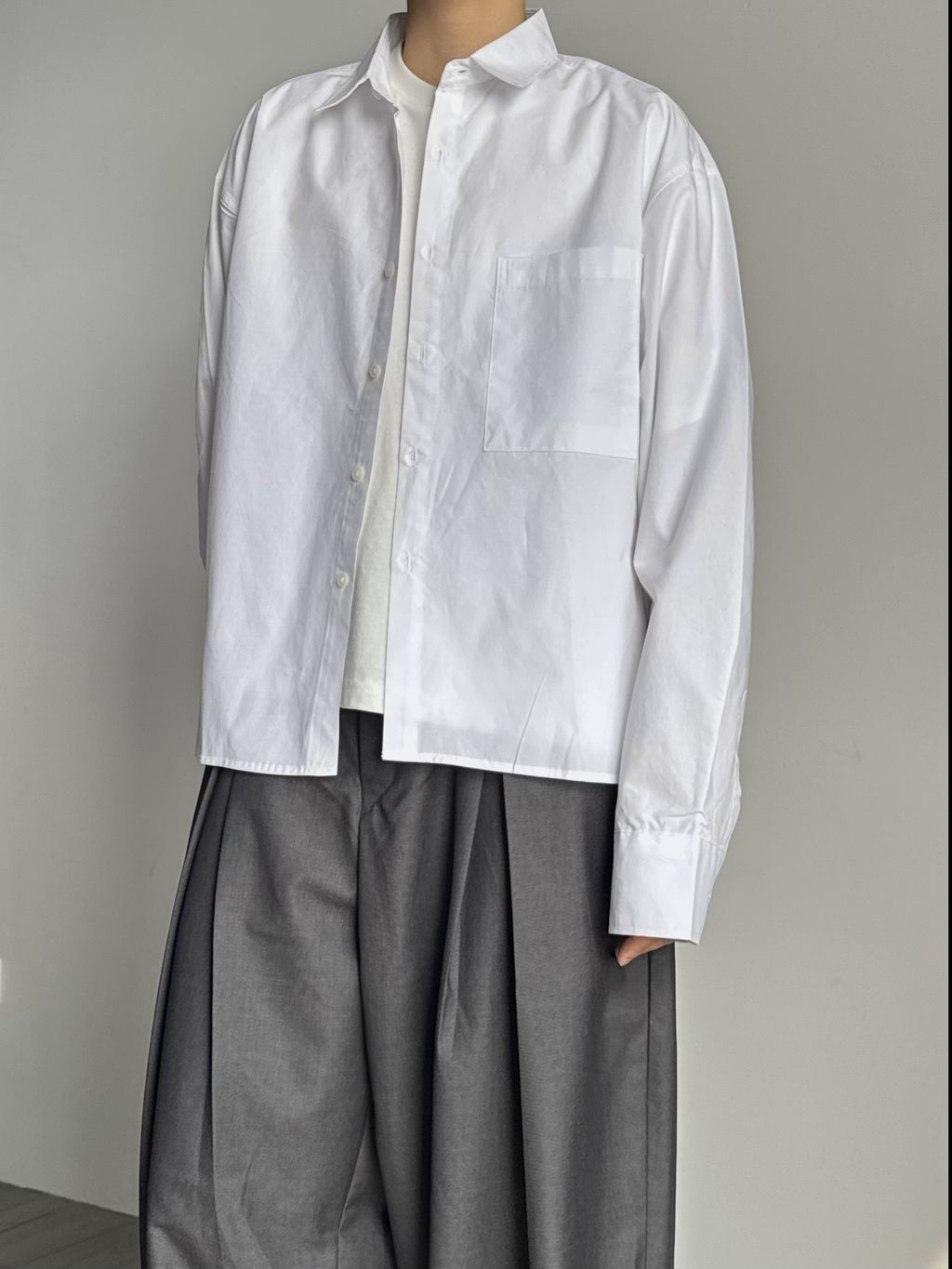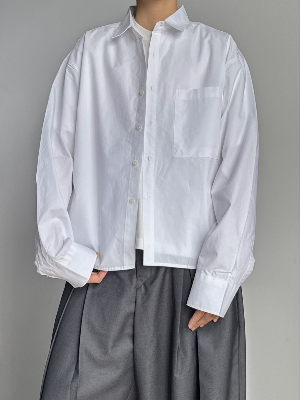 素色短版襯衫