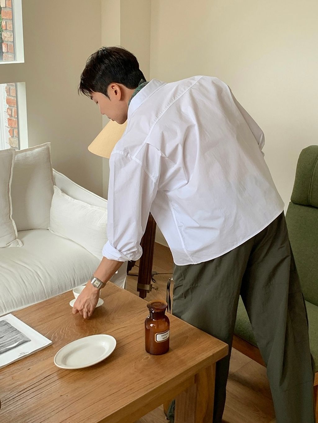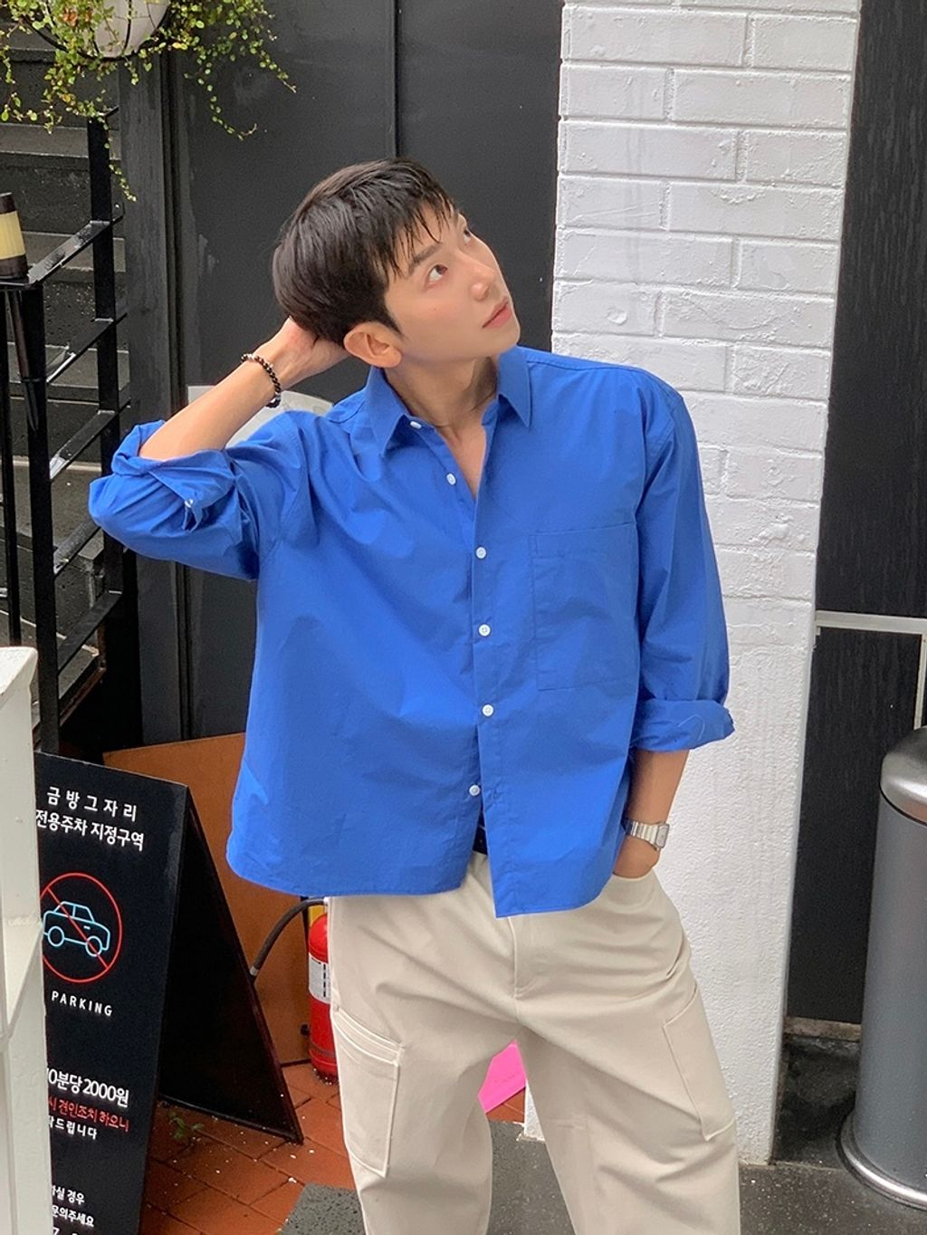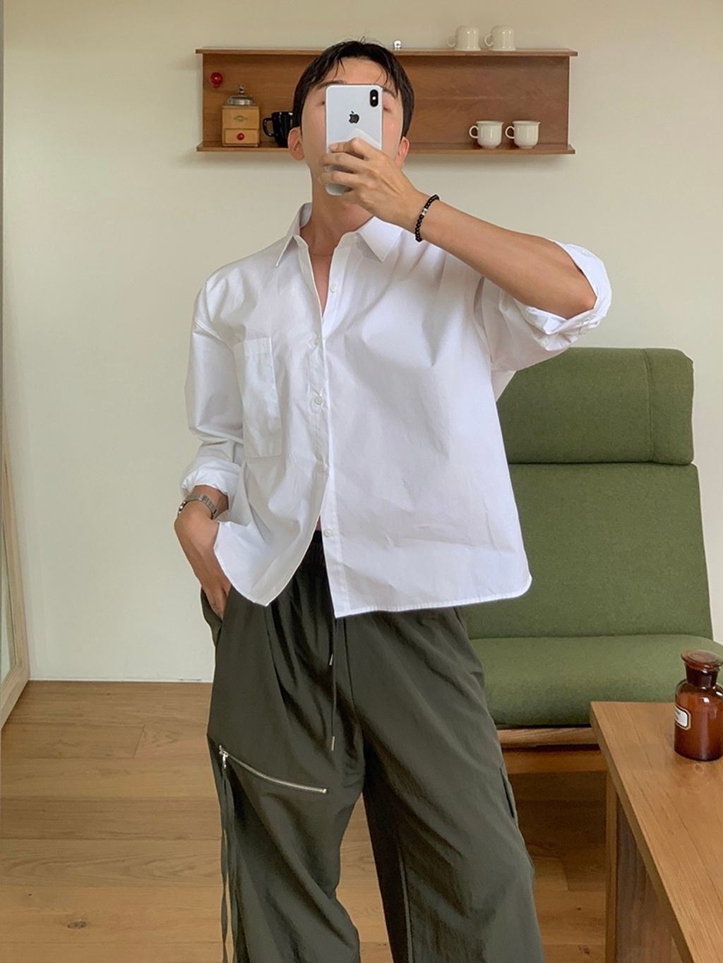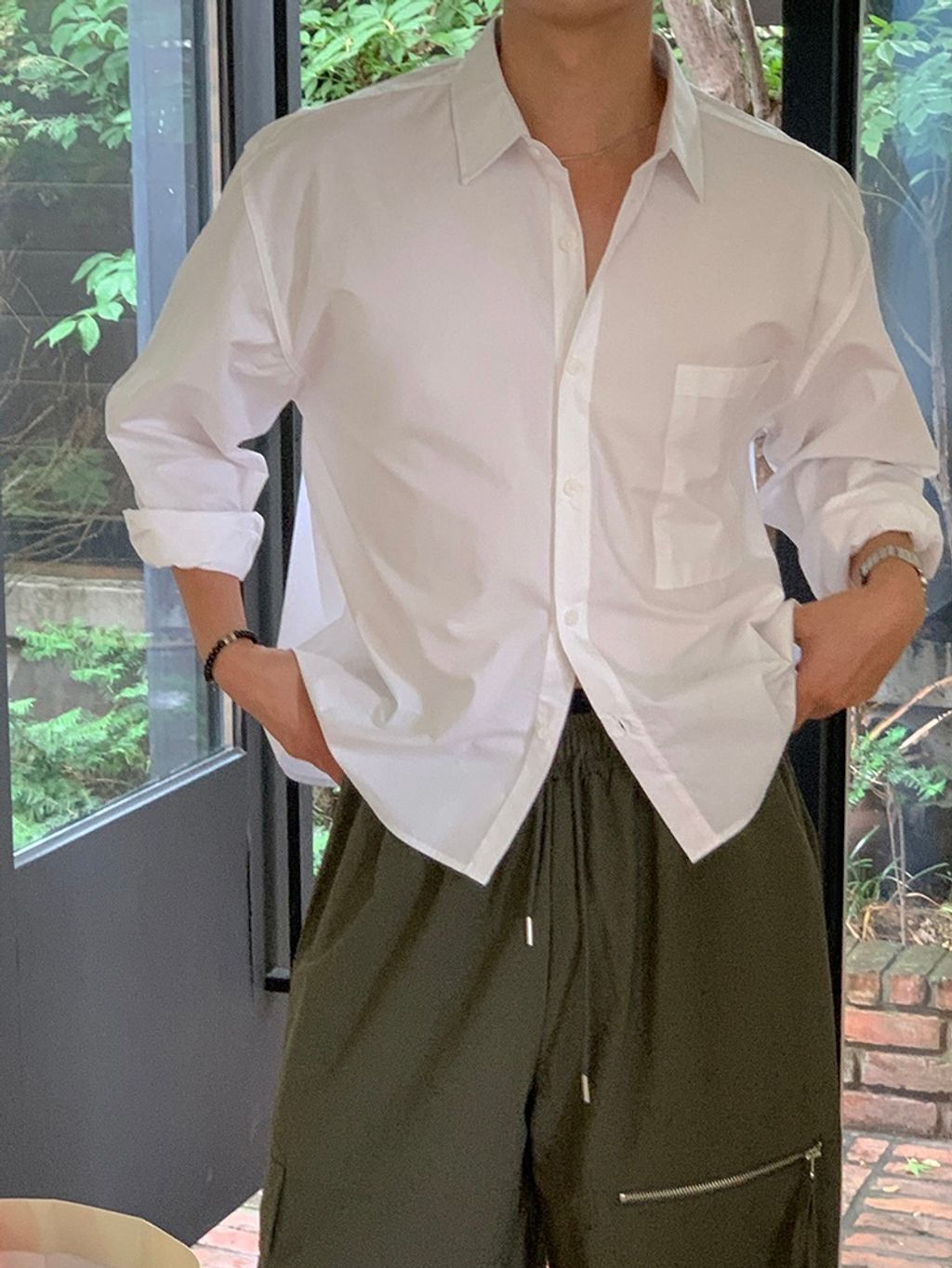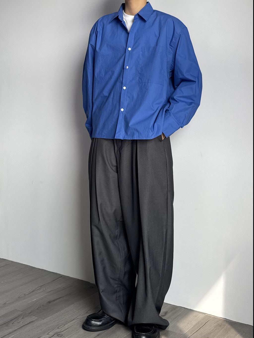 素色短版襯衫