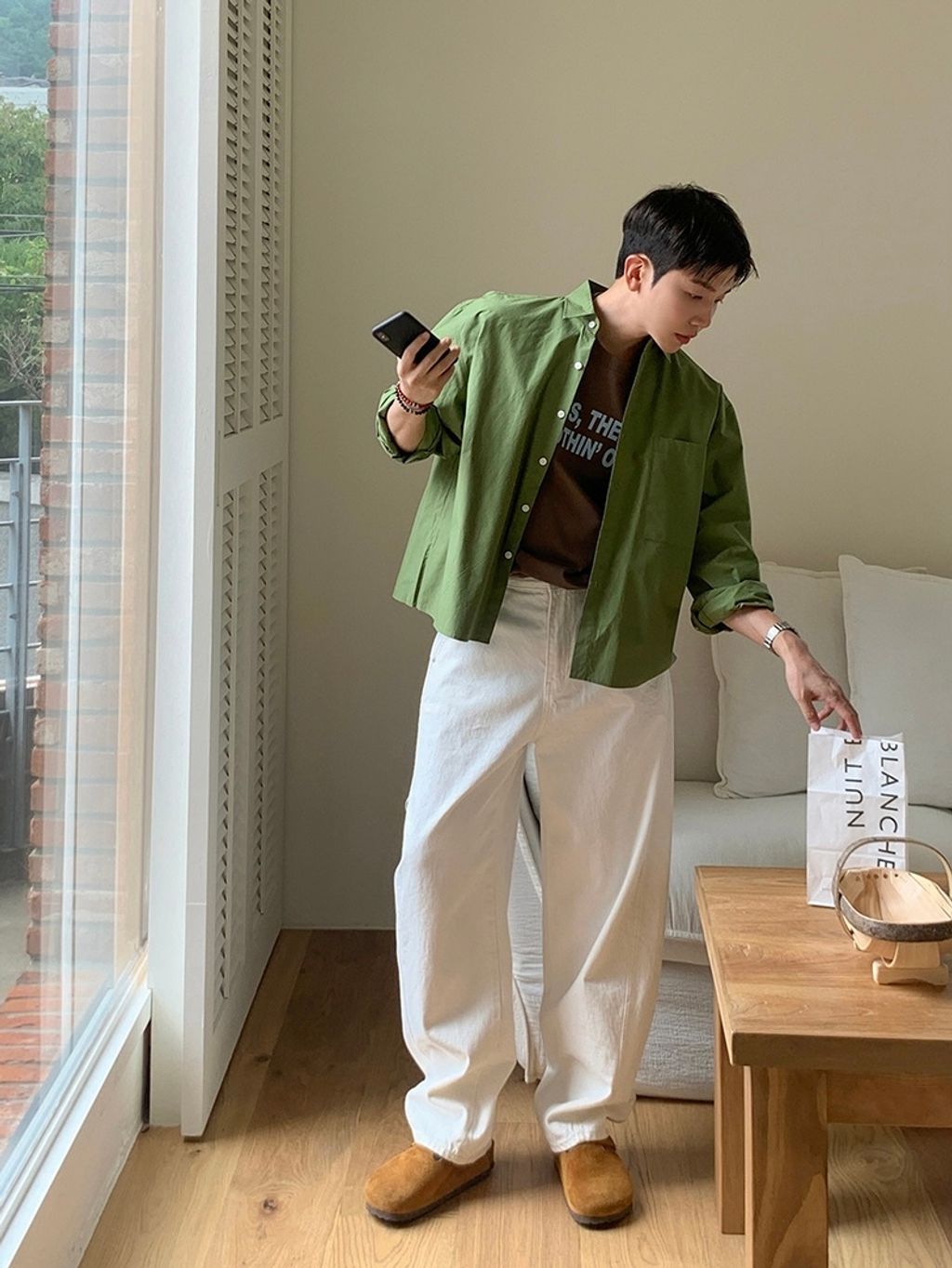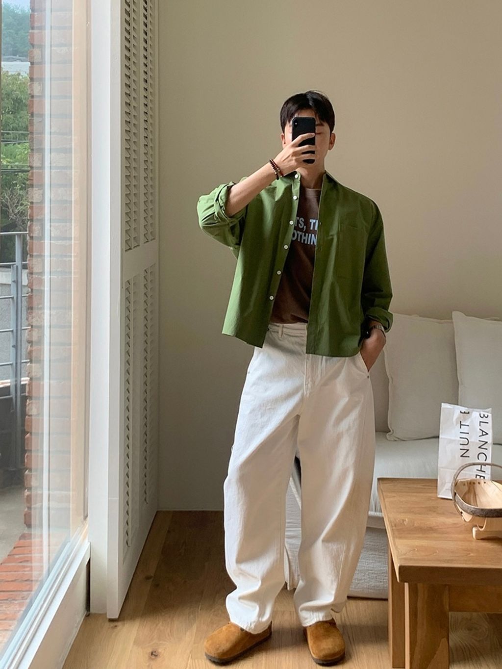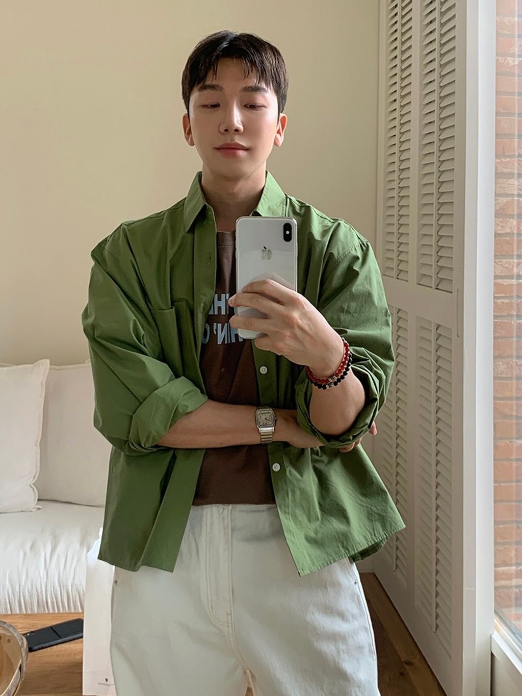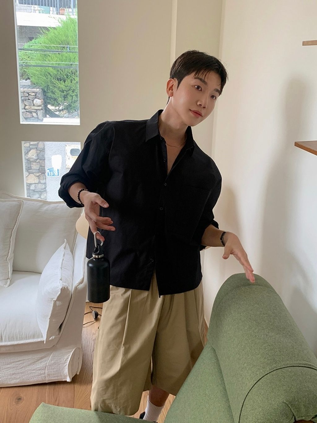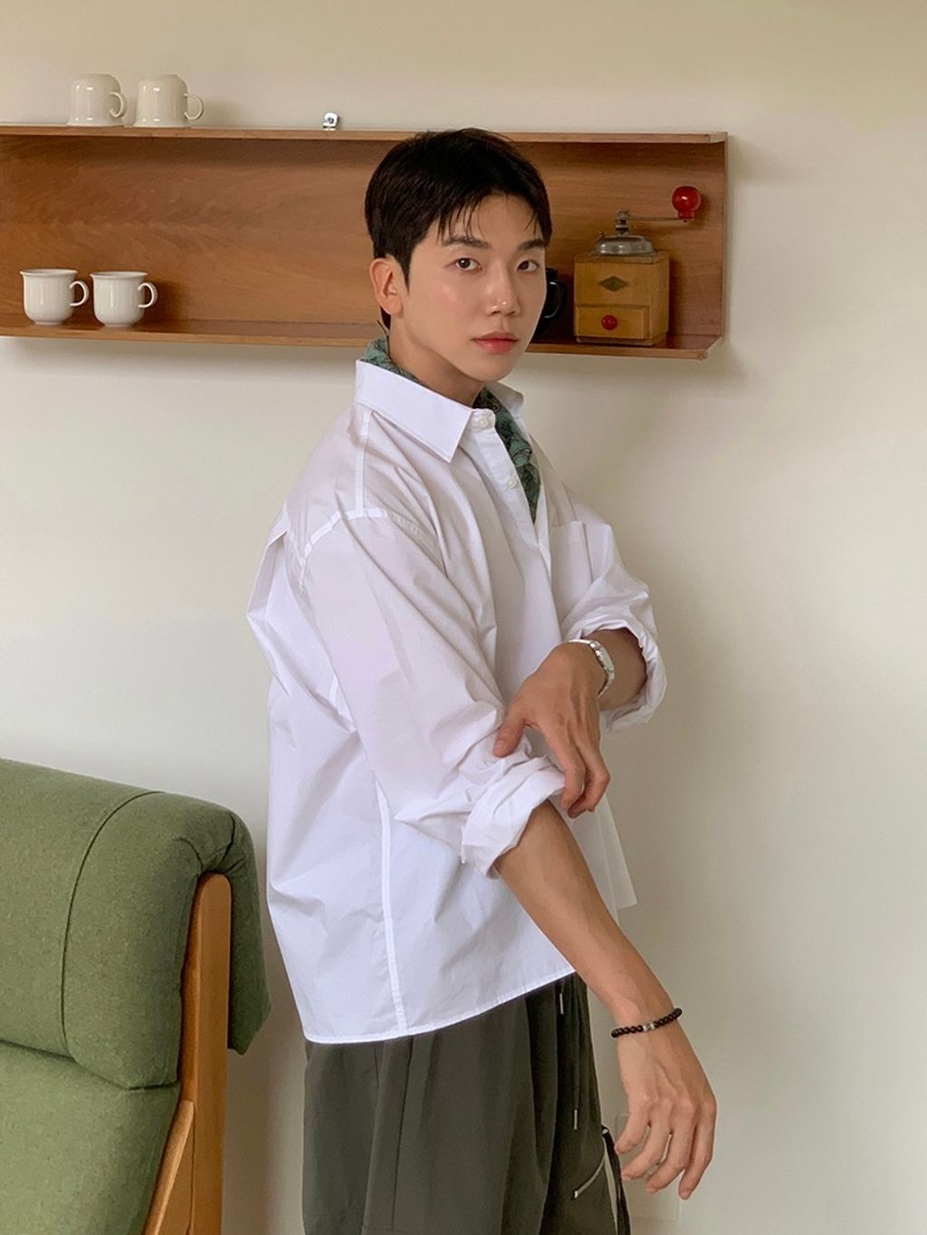 素色短版襯衫