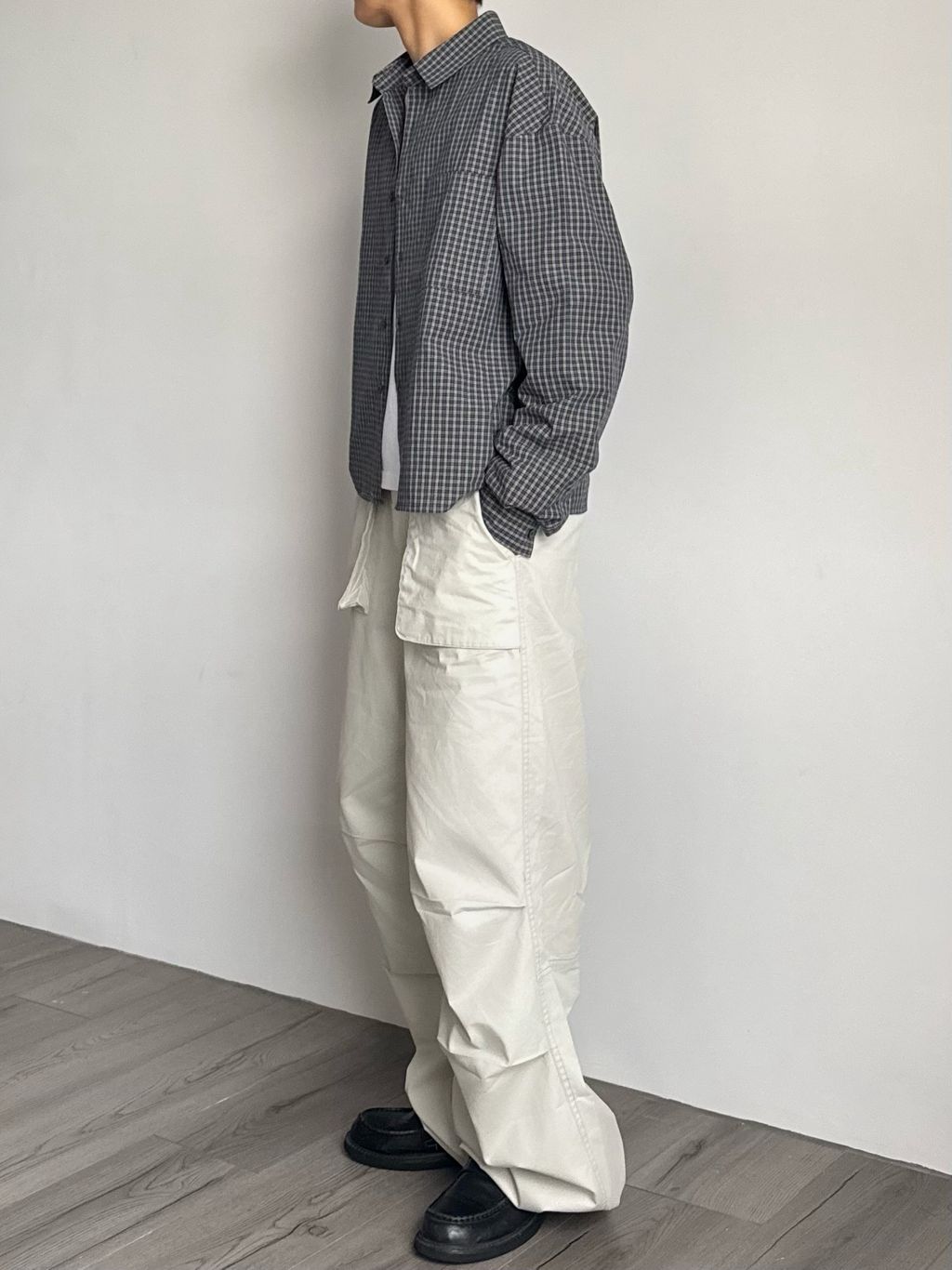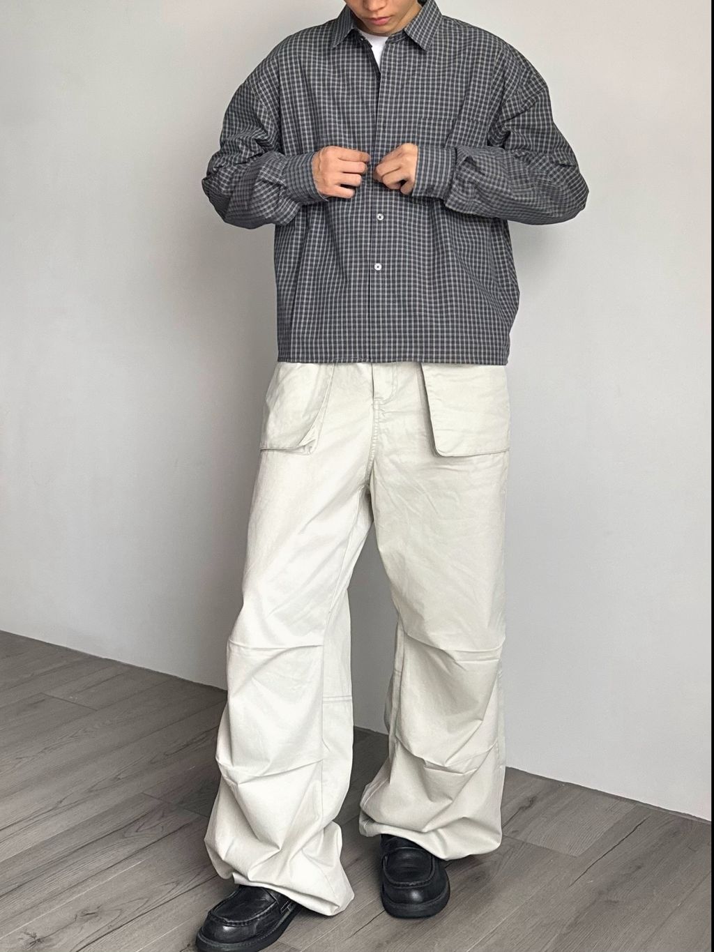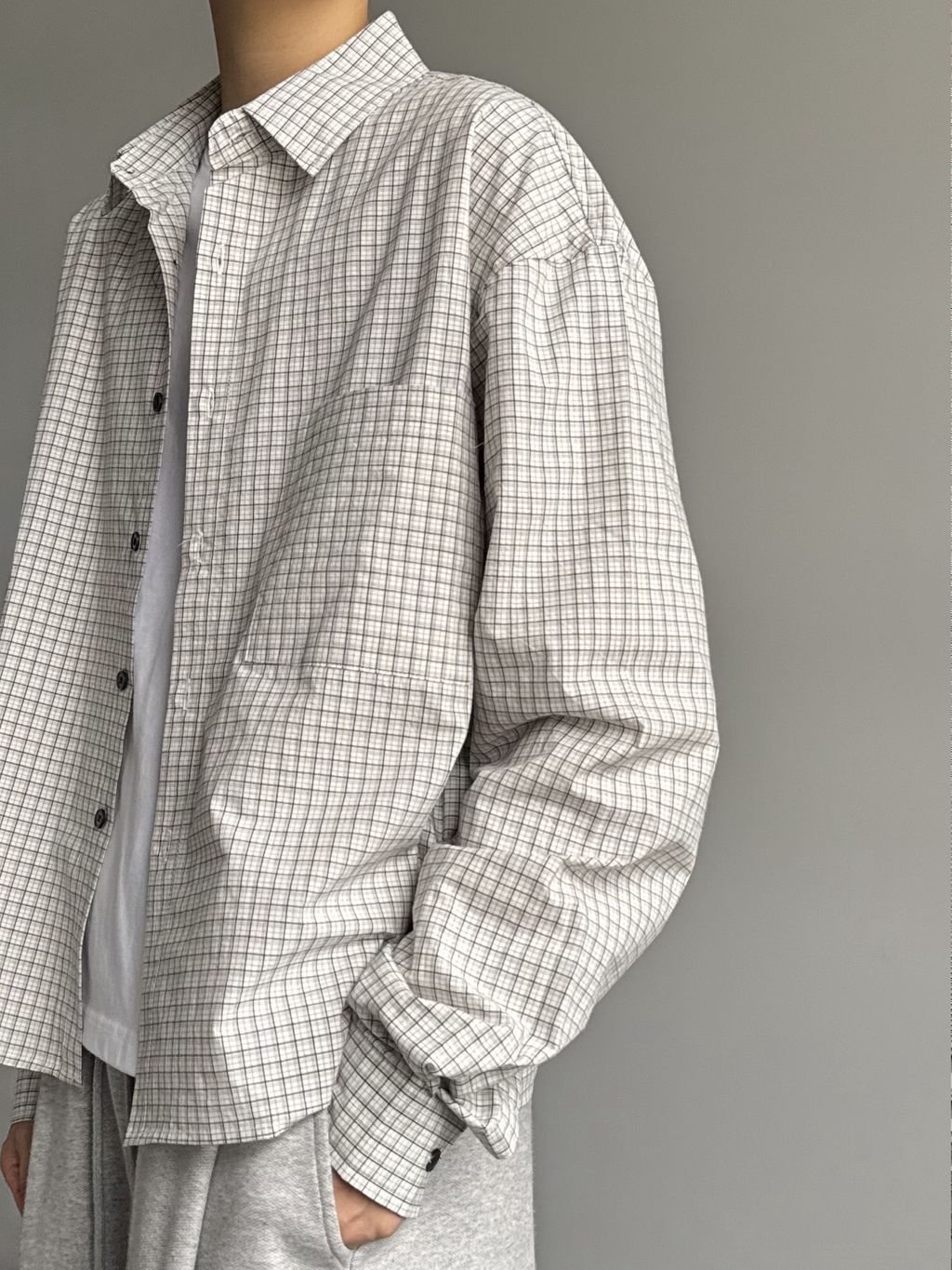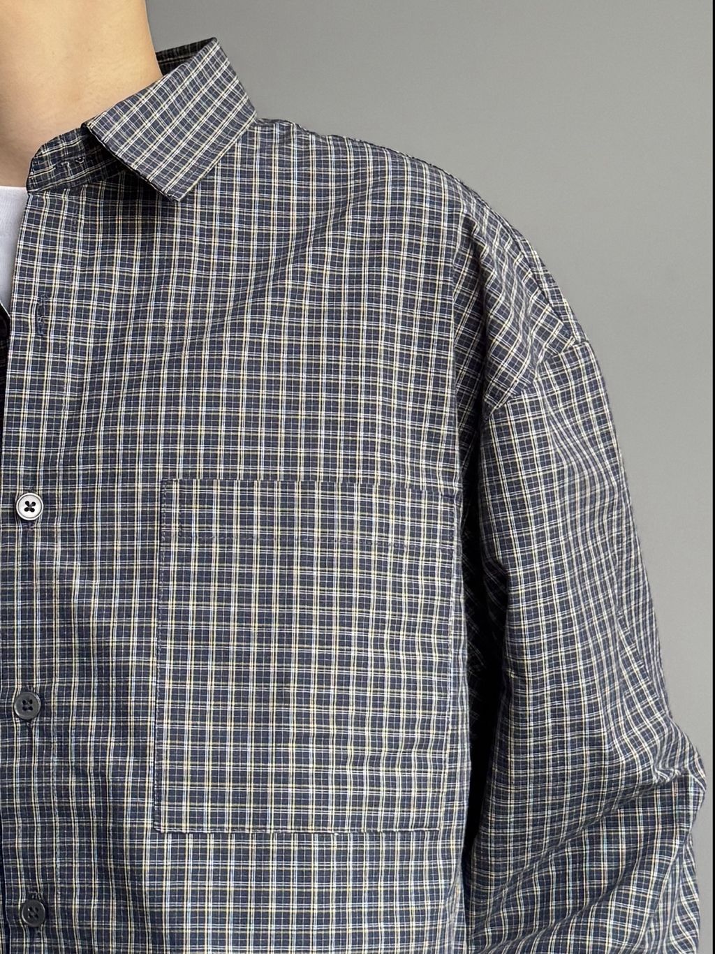 小格紋短版襯衫
