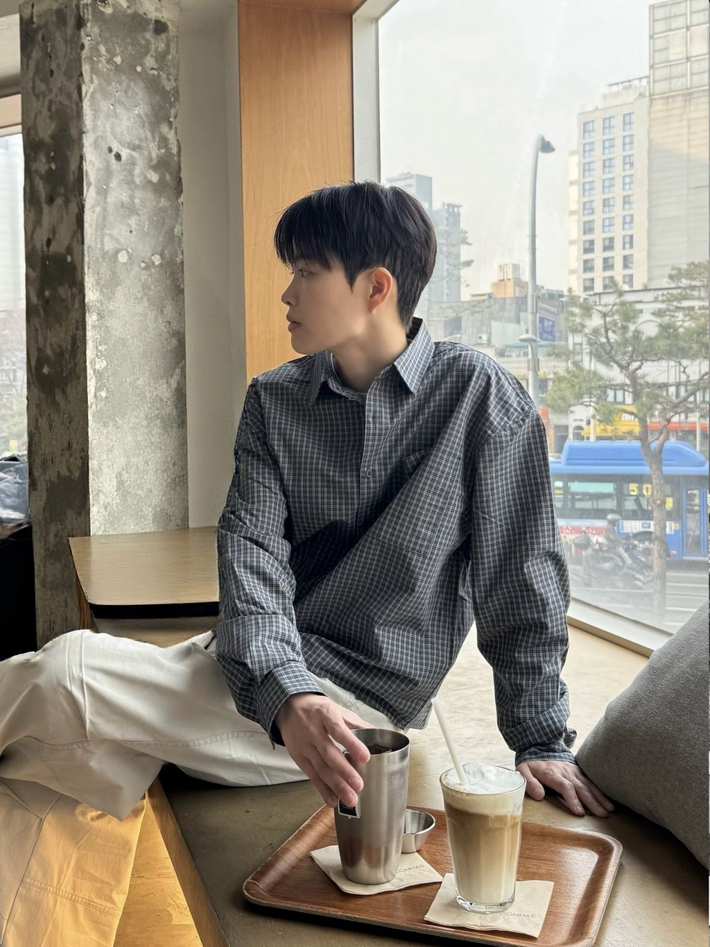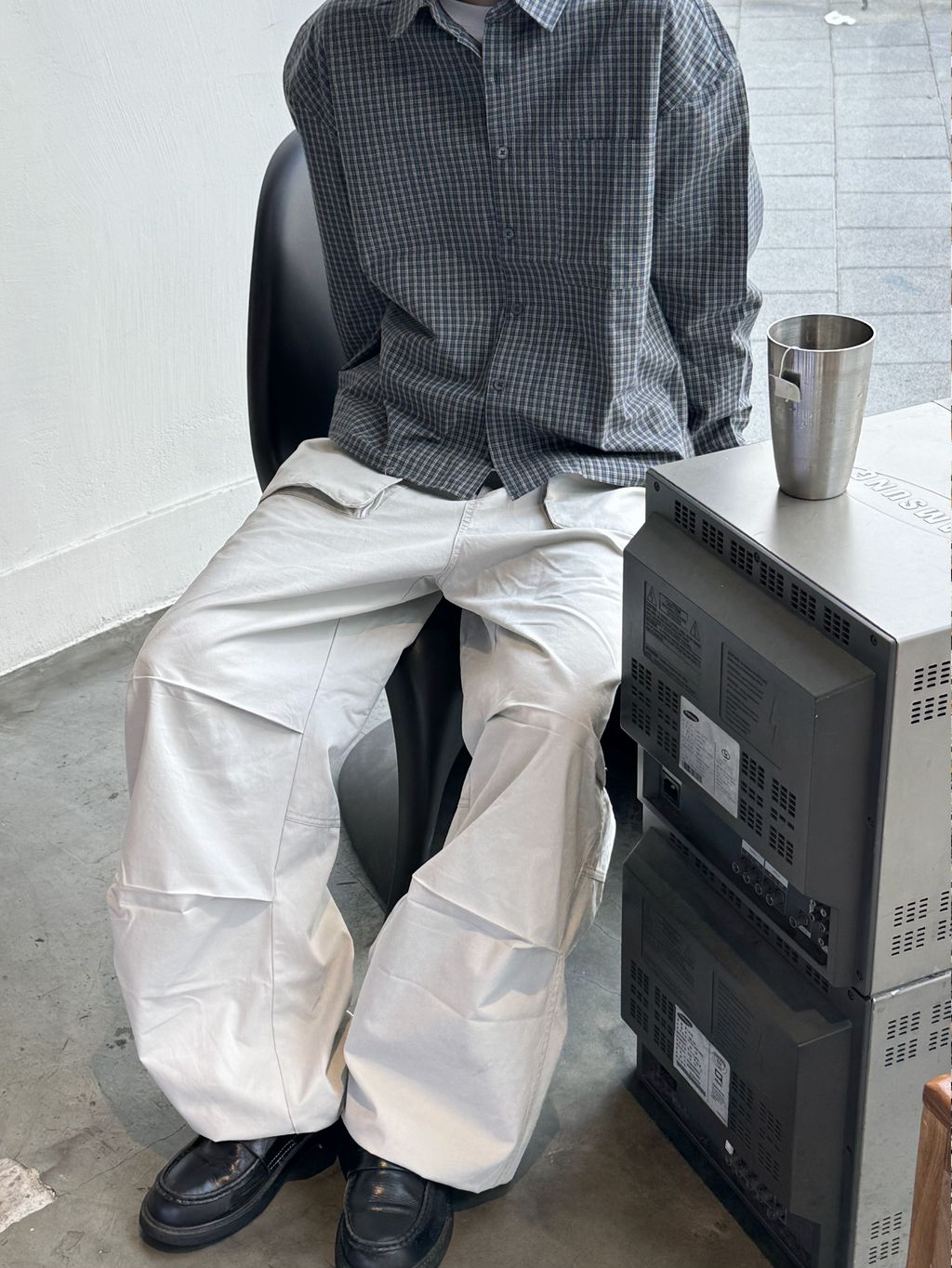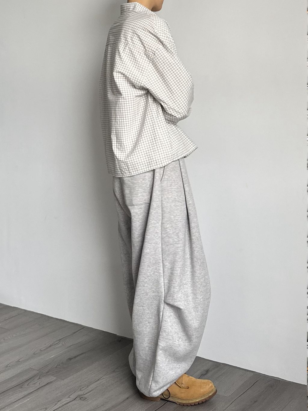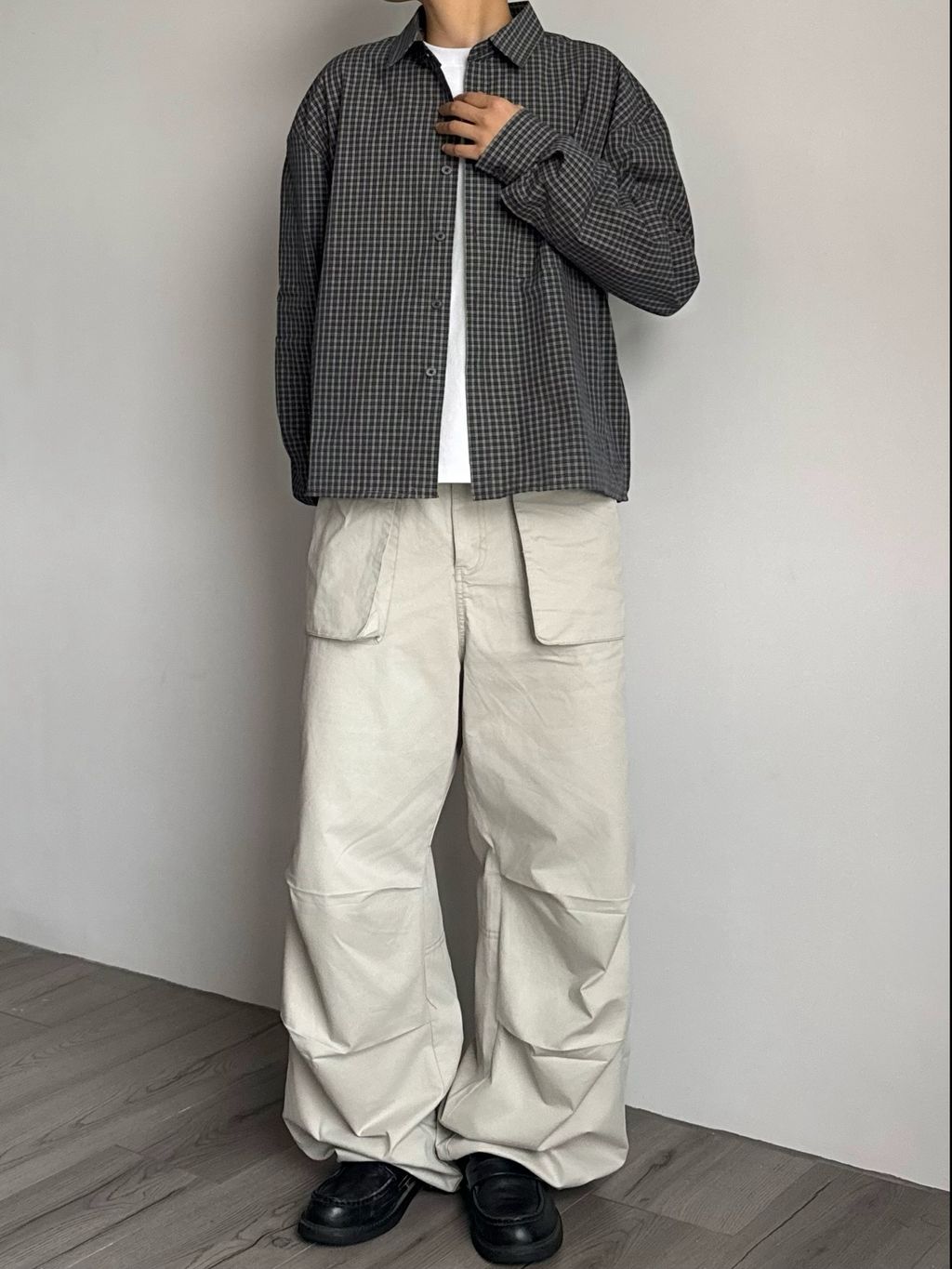 小格紋短版襯衫