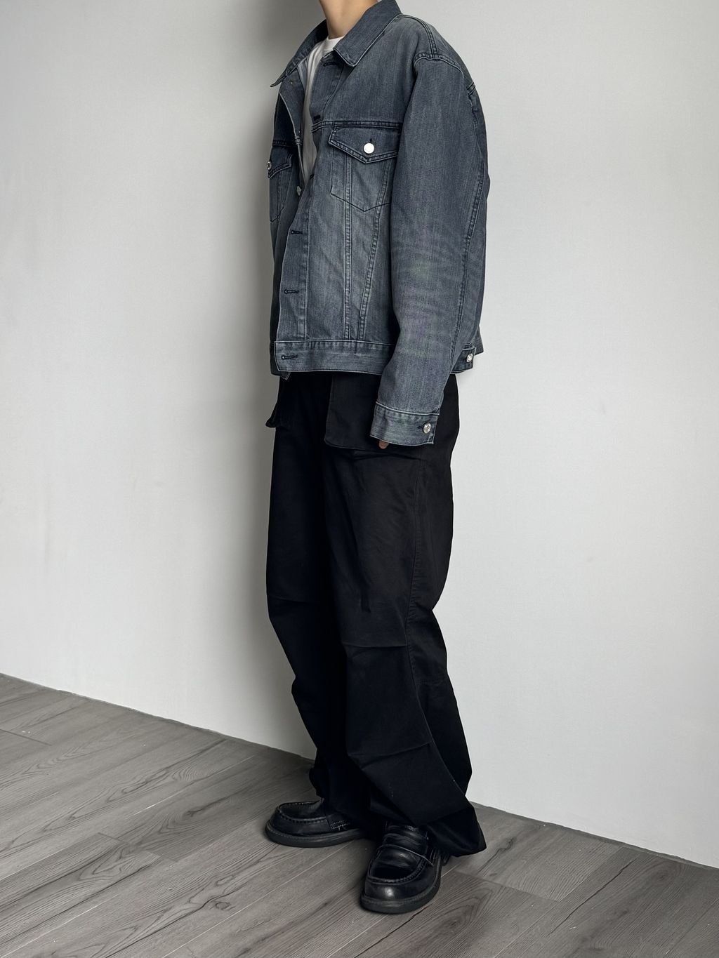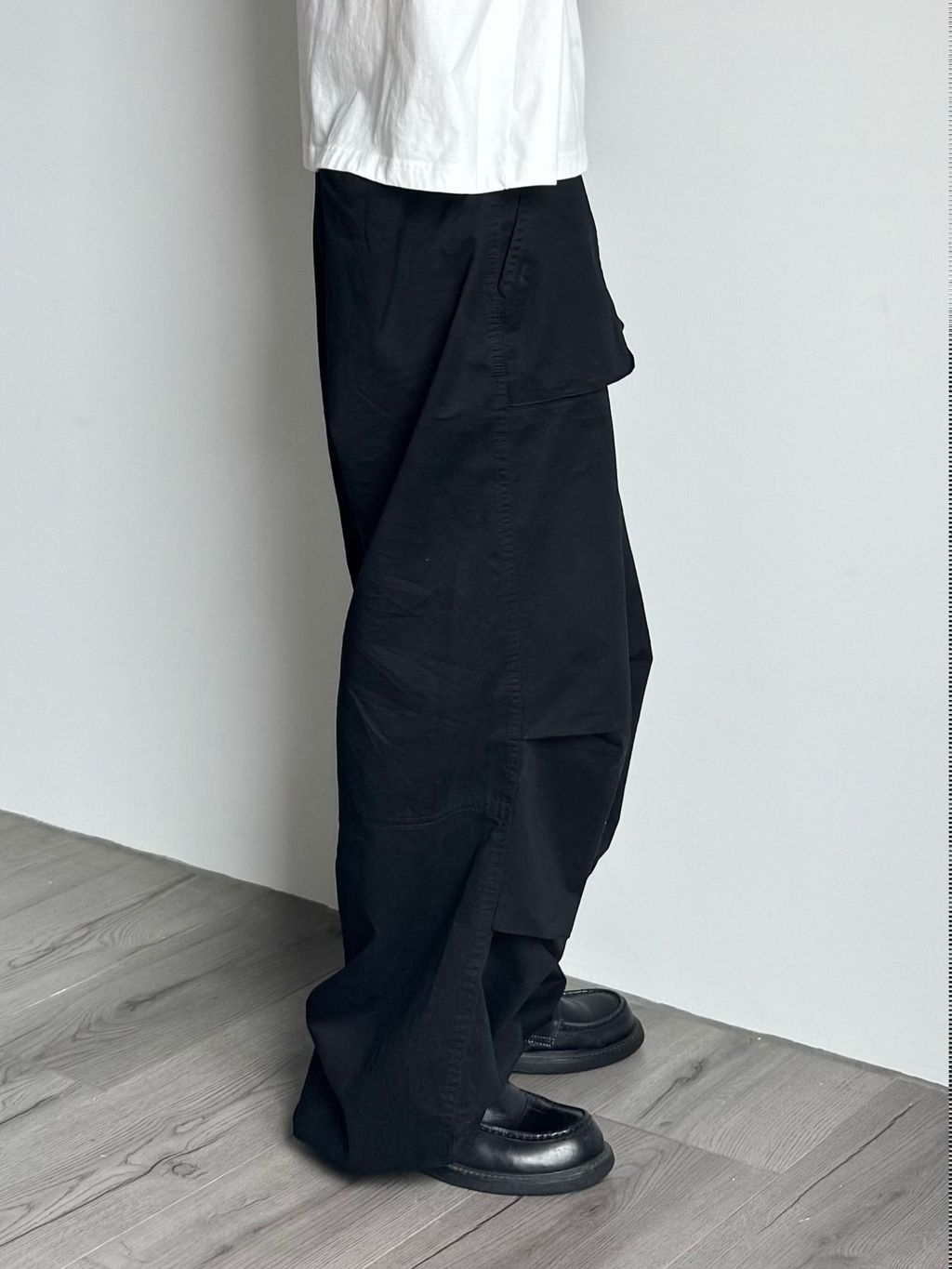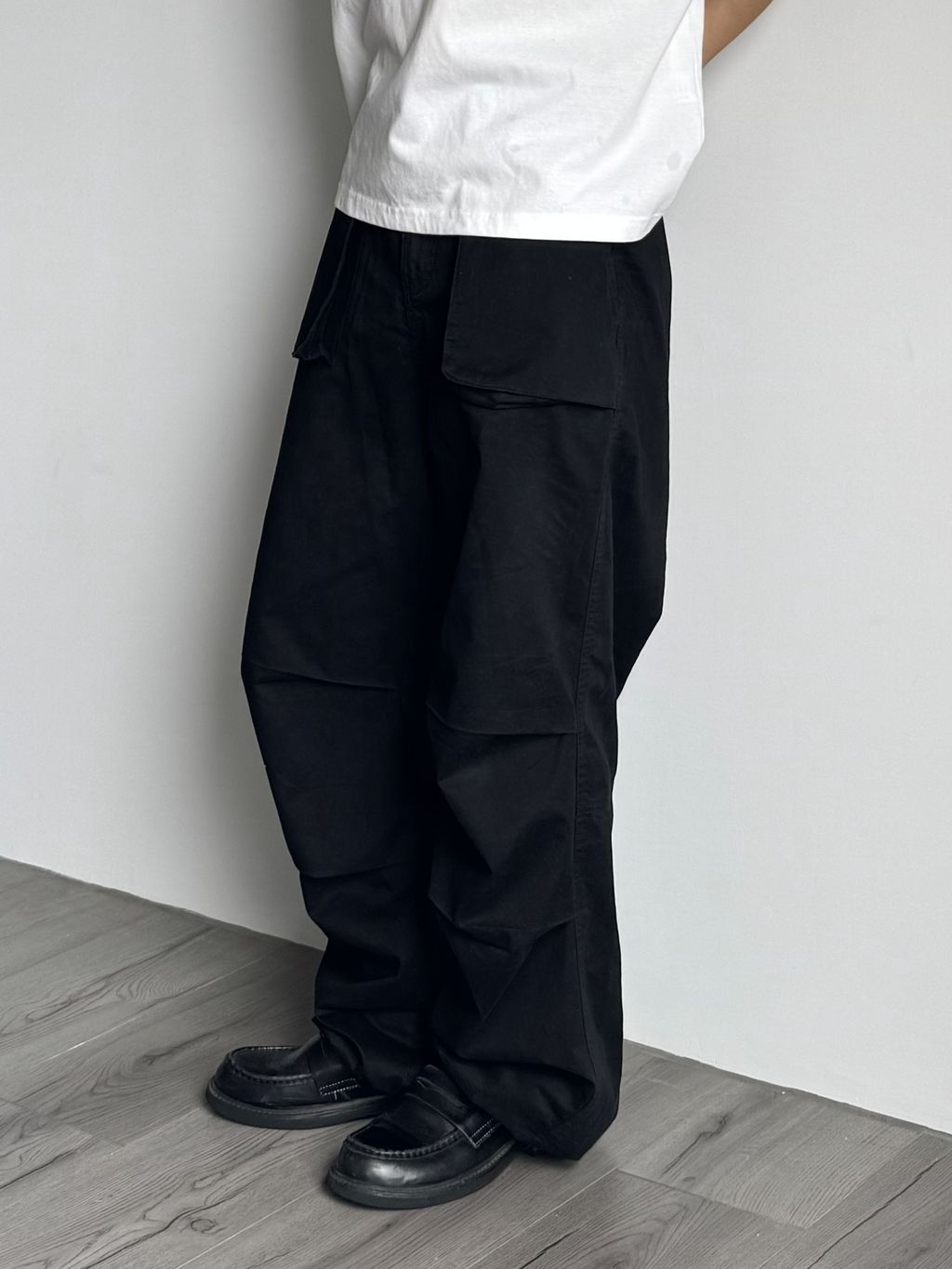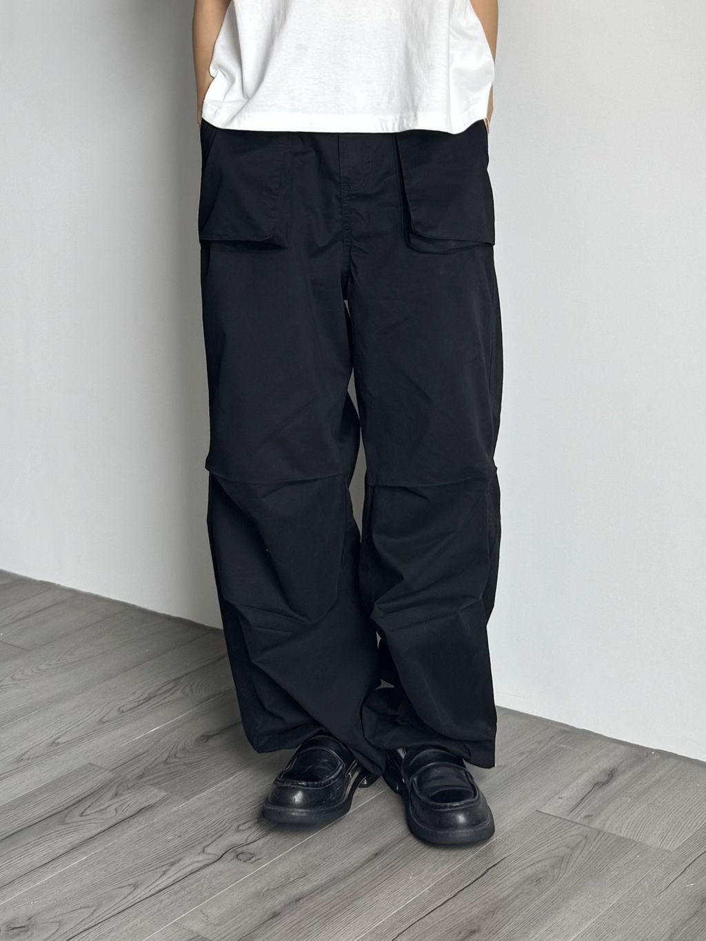 立體口袋傘兵褲-黑