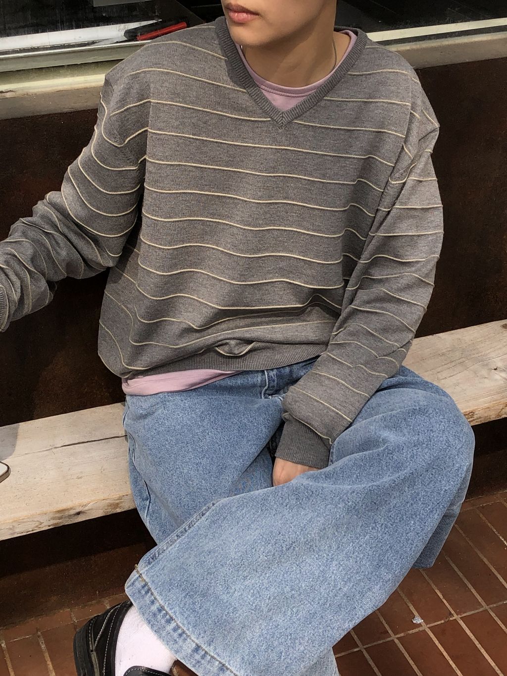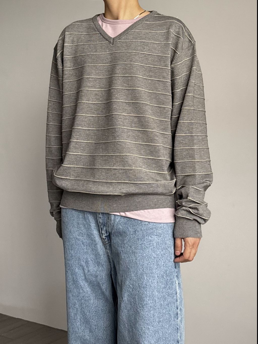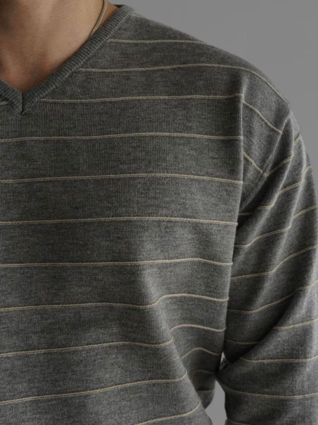 橫條V領針織上衣