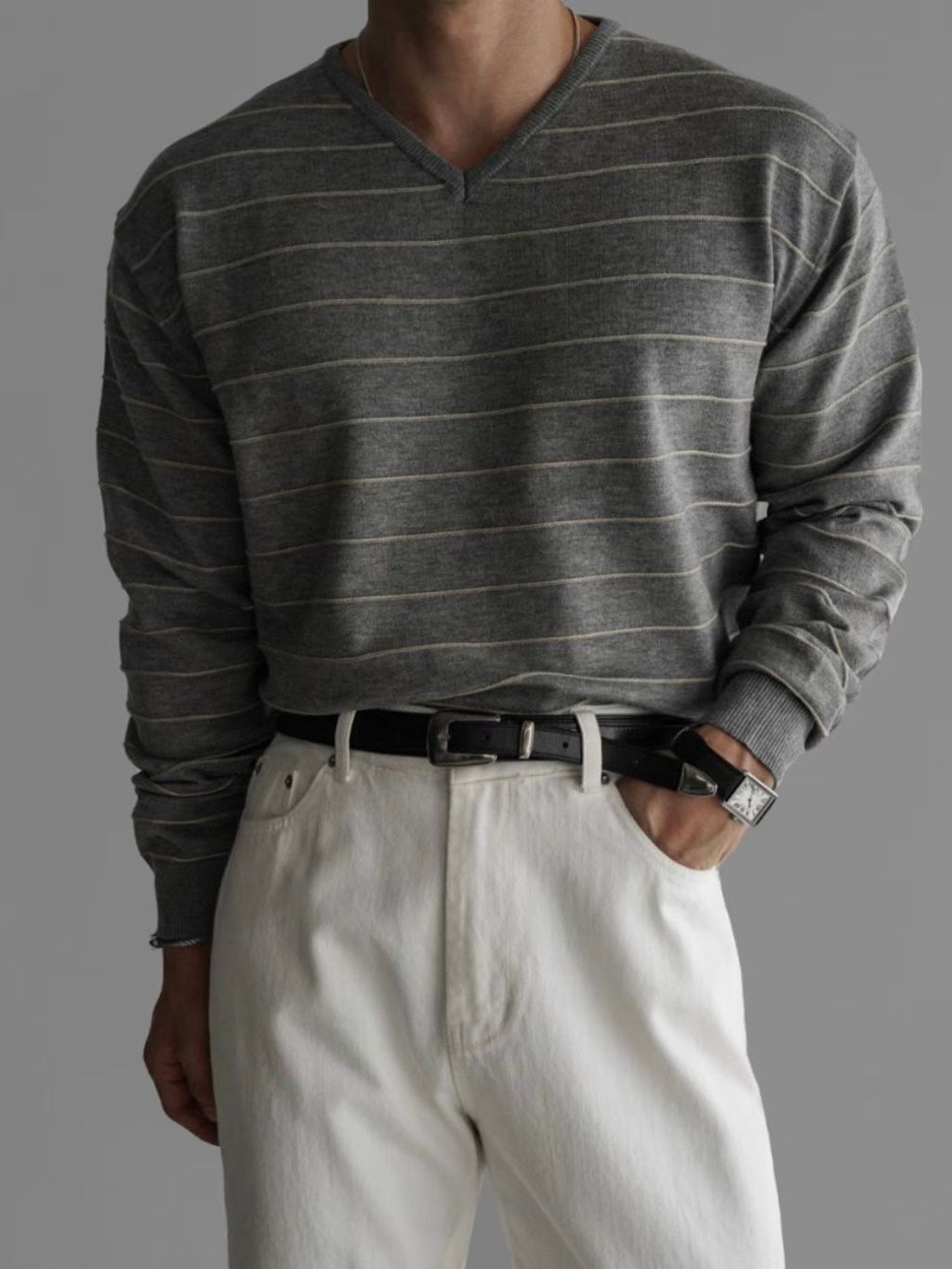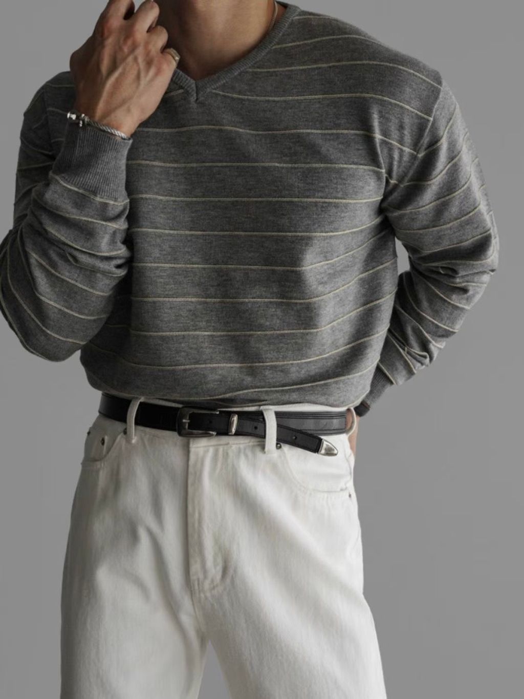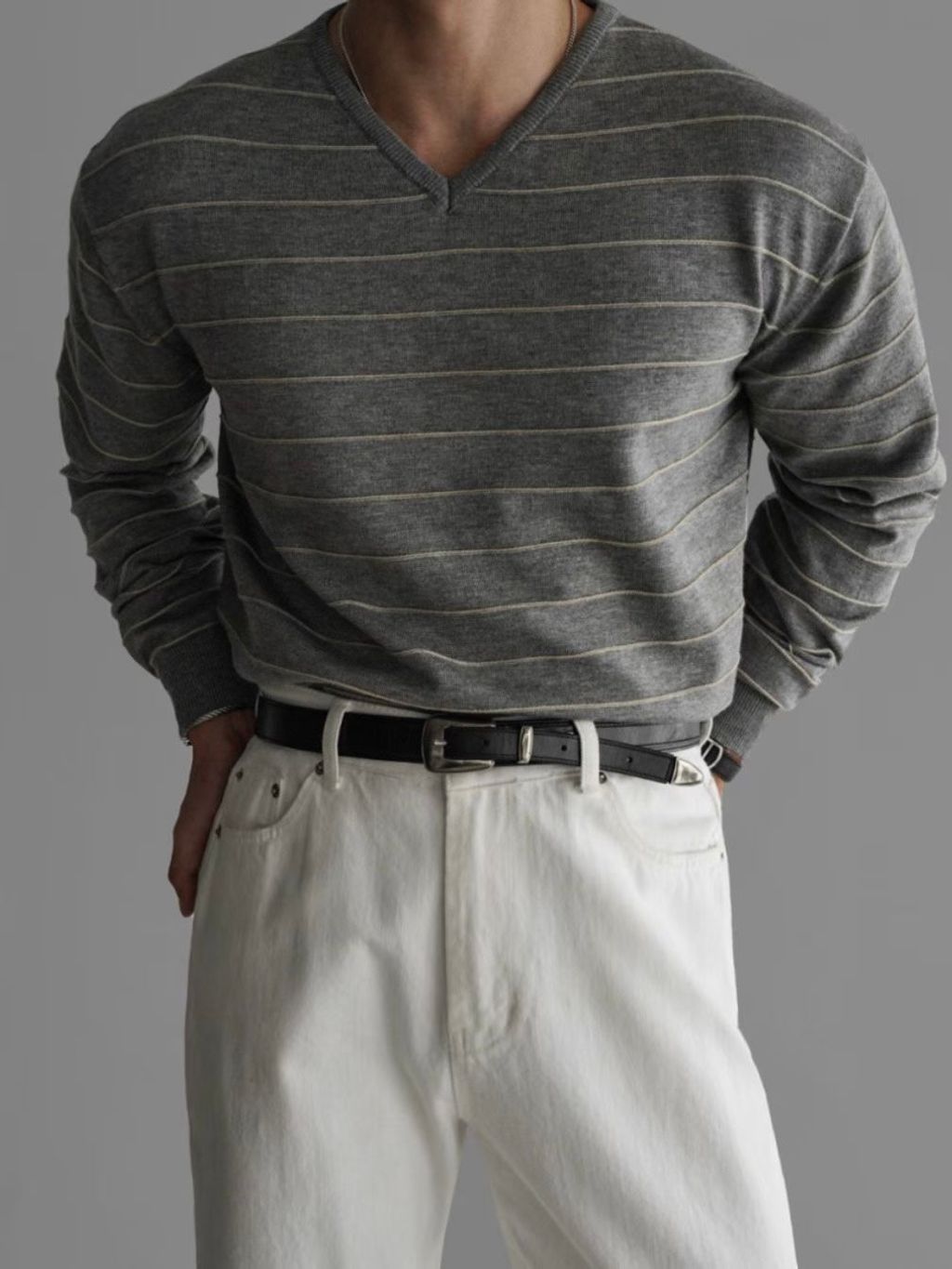 橫條V領針織上衣