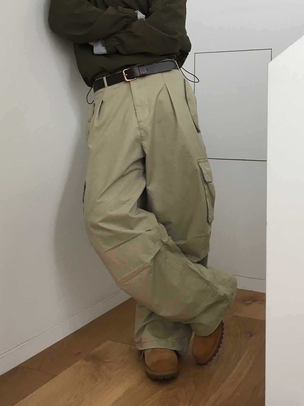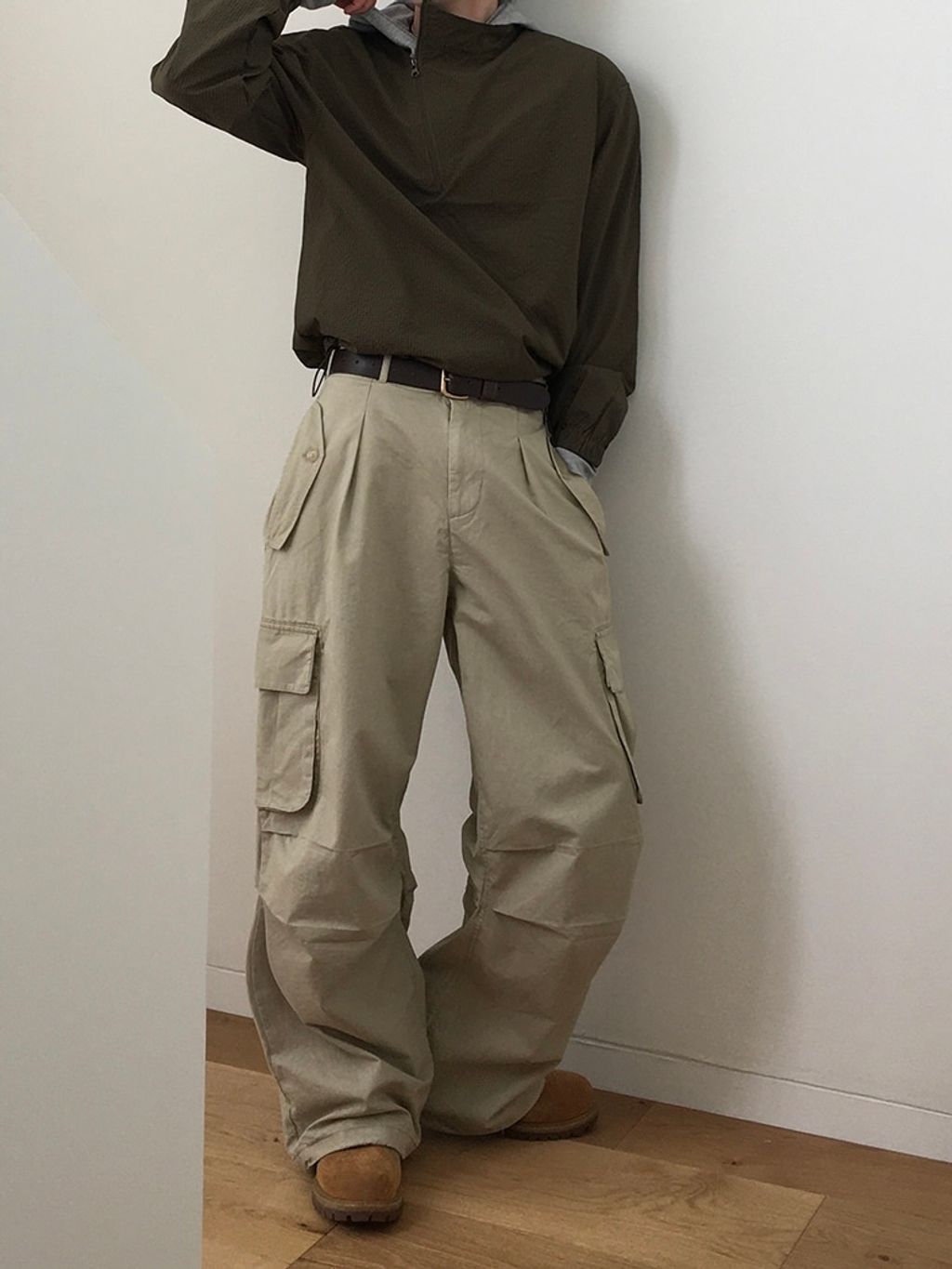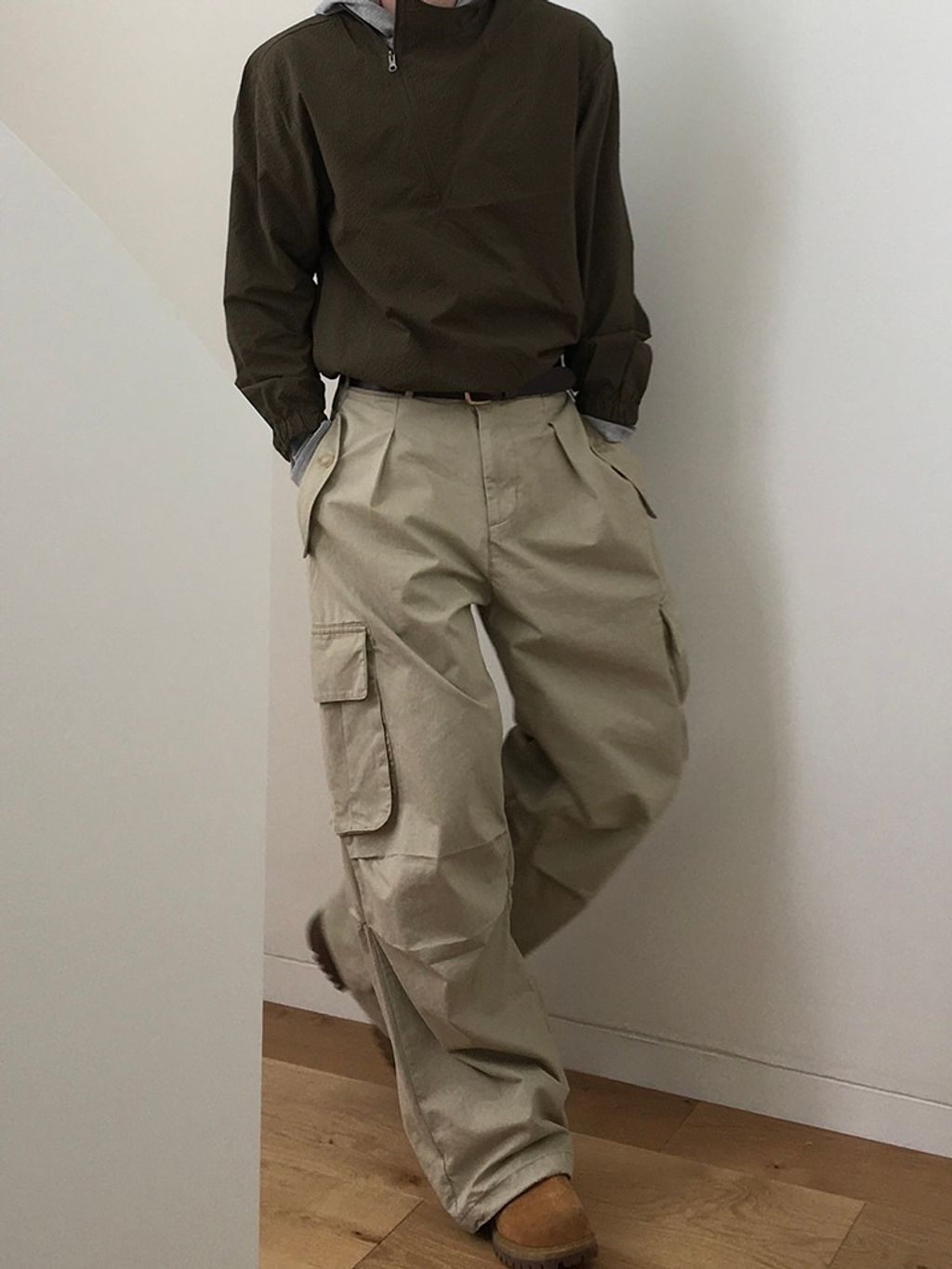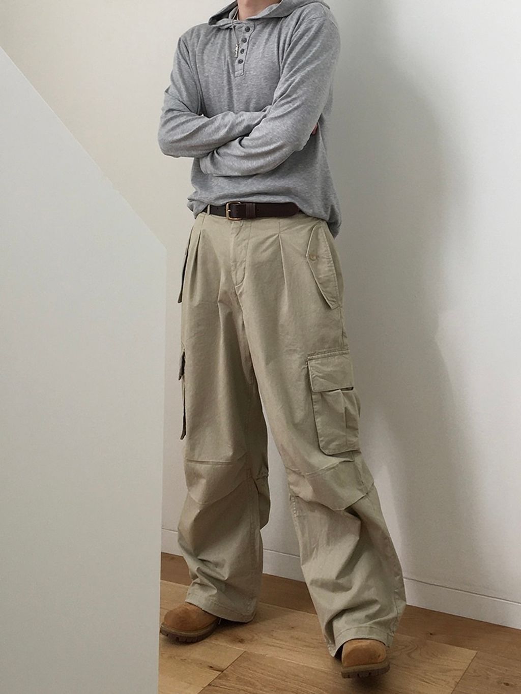口袋工作寬褲