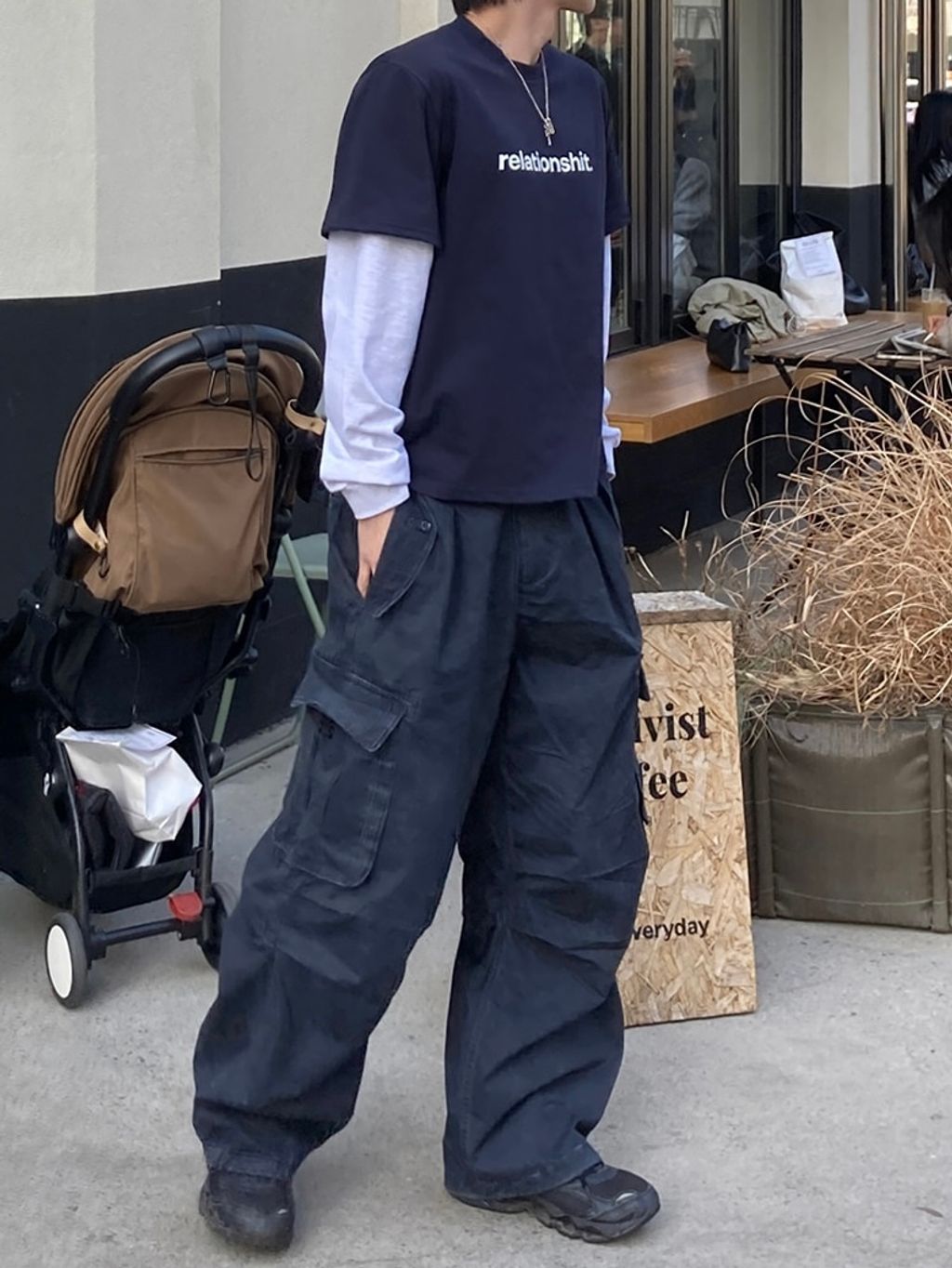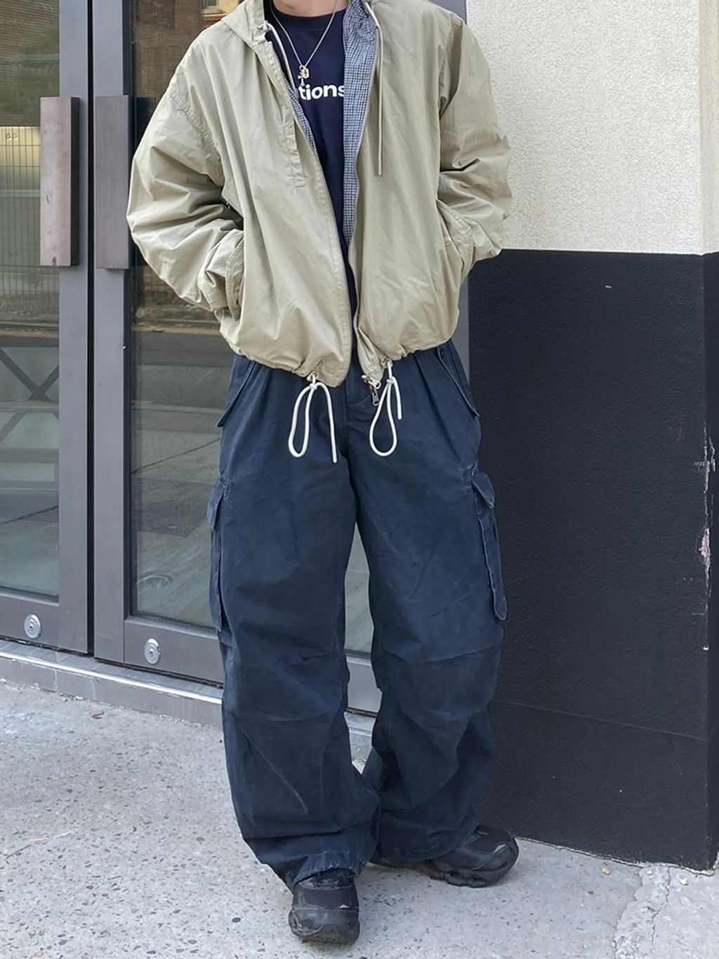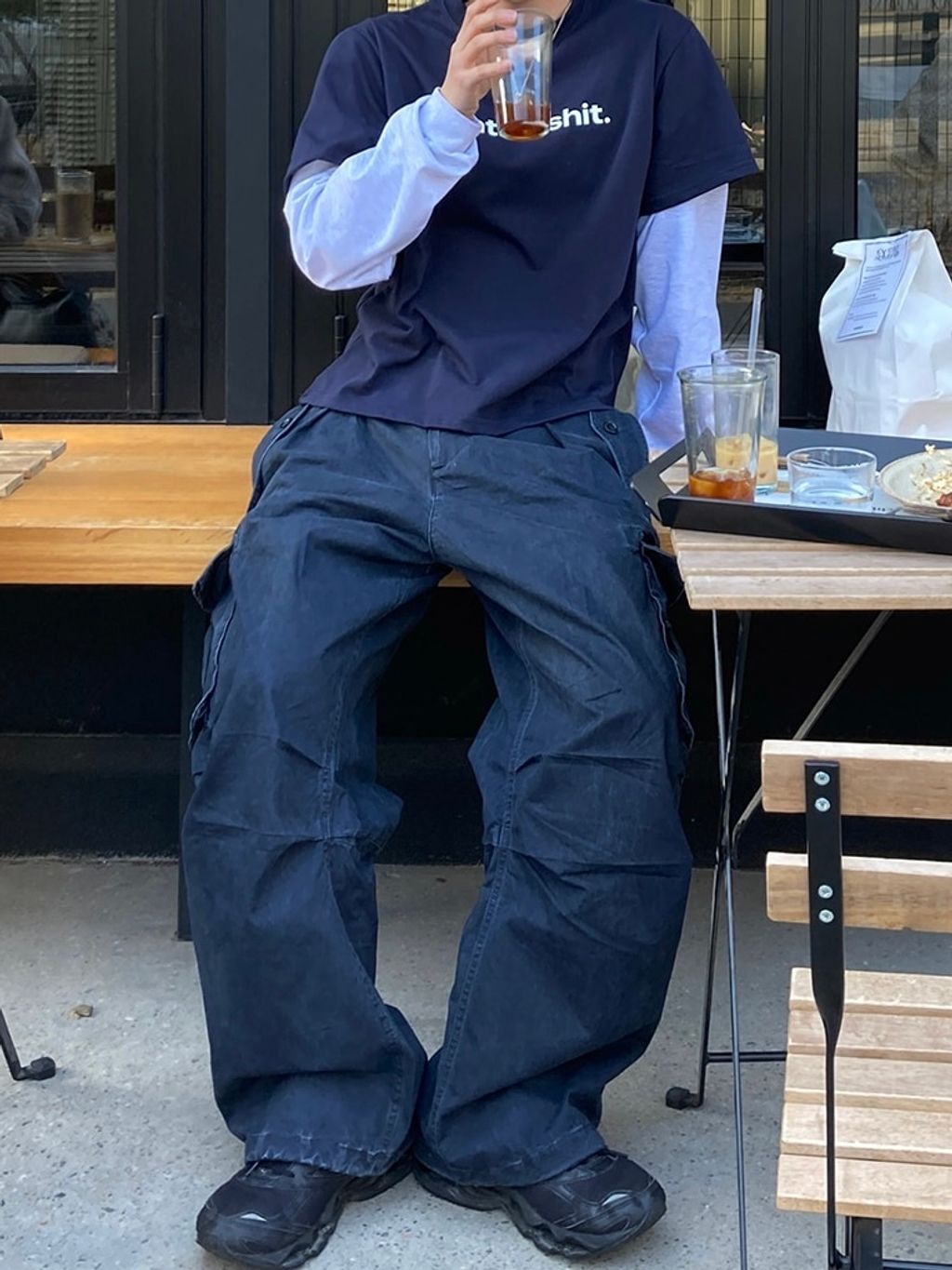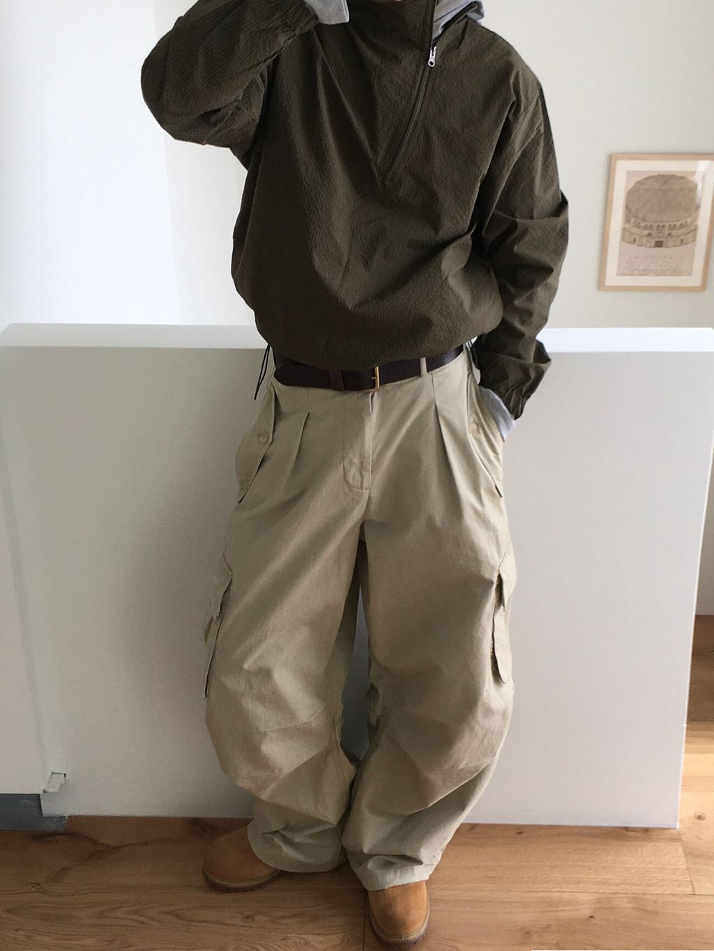 口袋工作寬褲