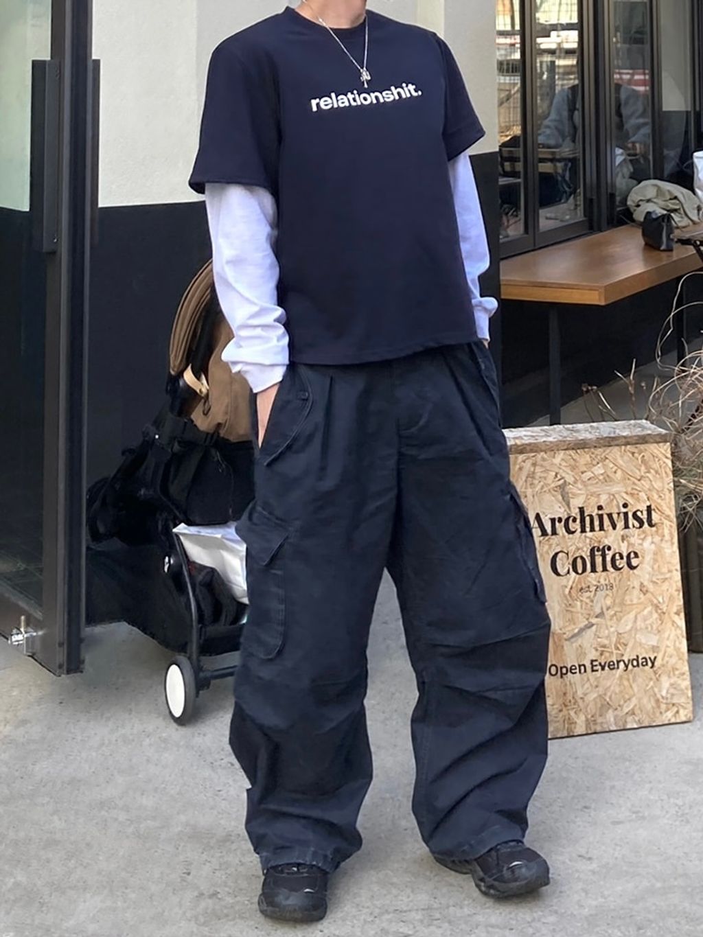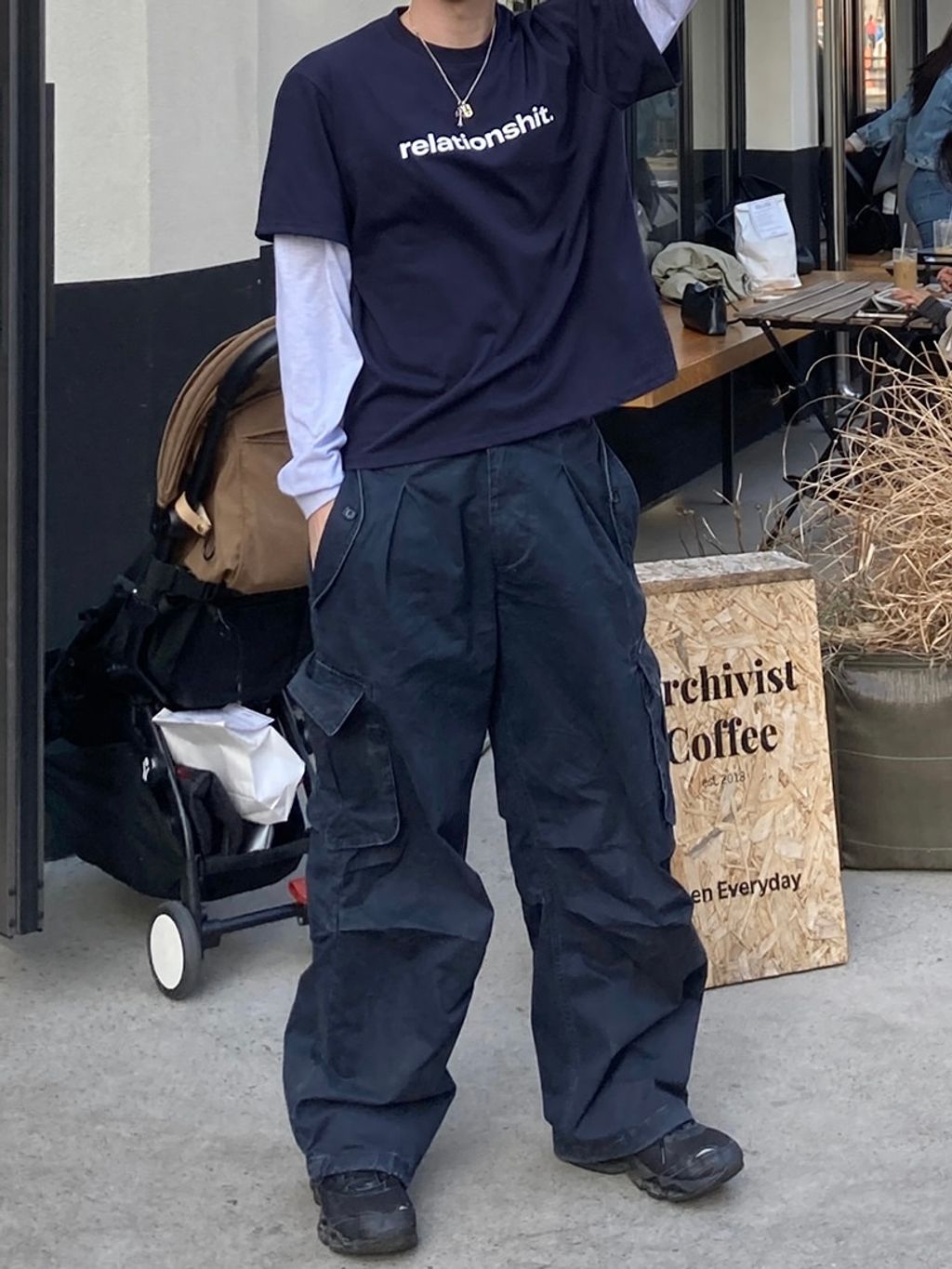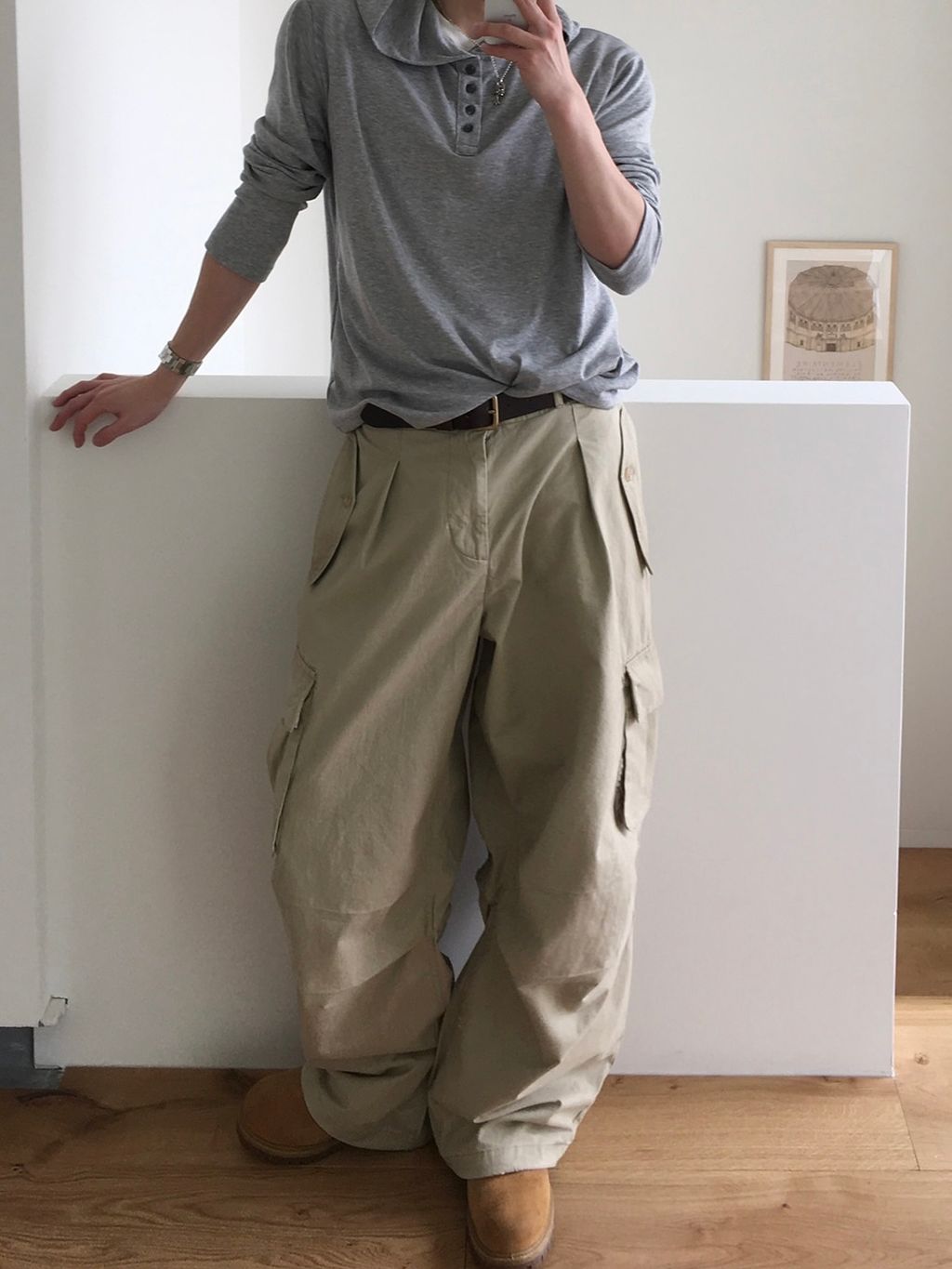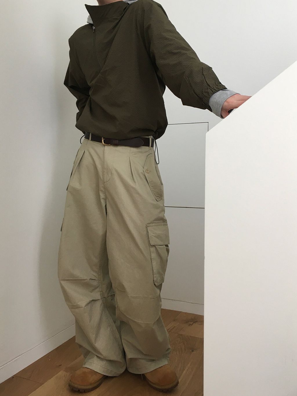 口袋工作寬褲