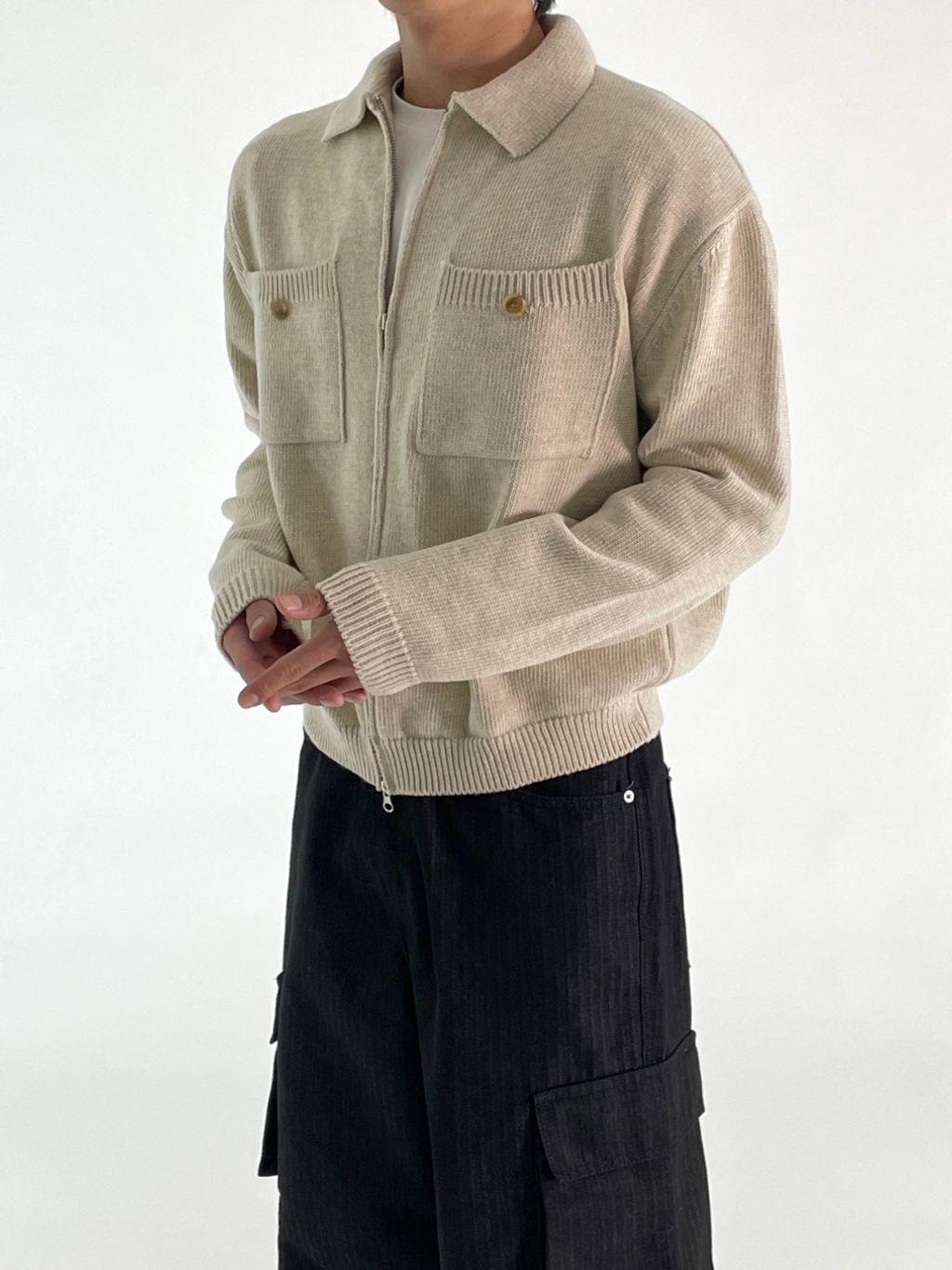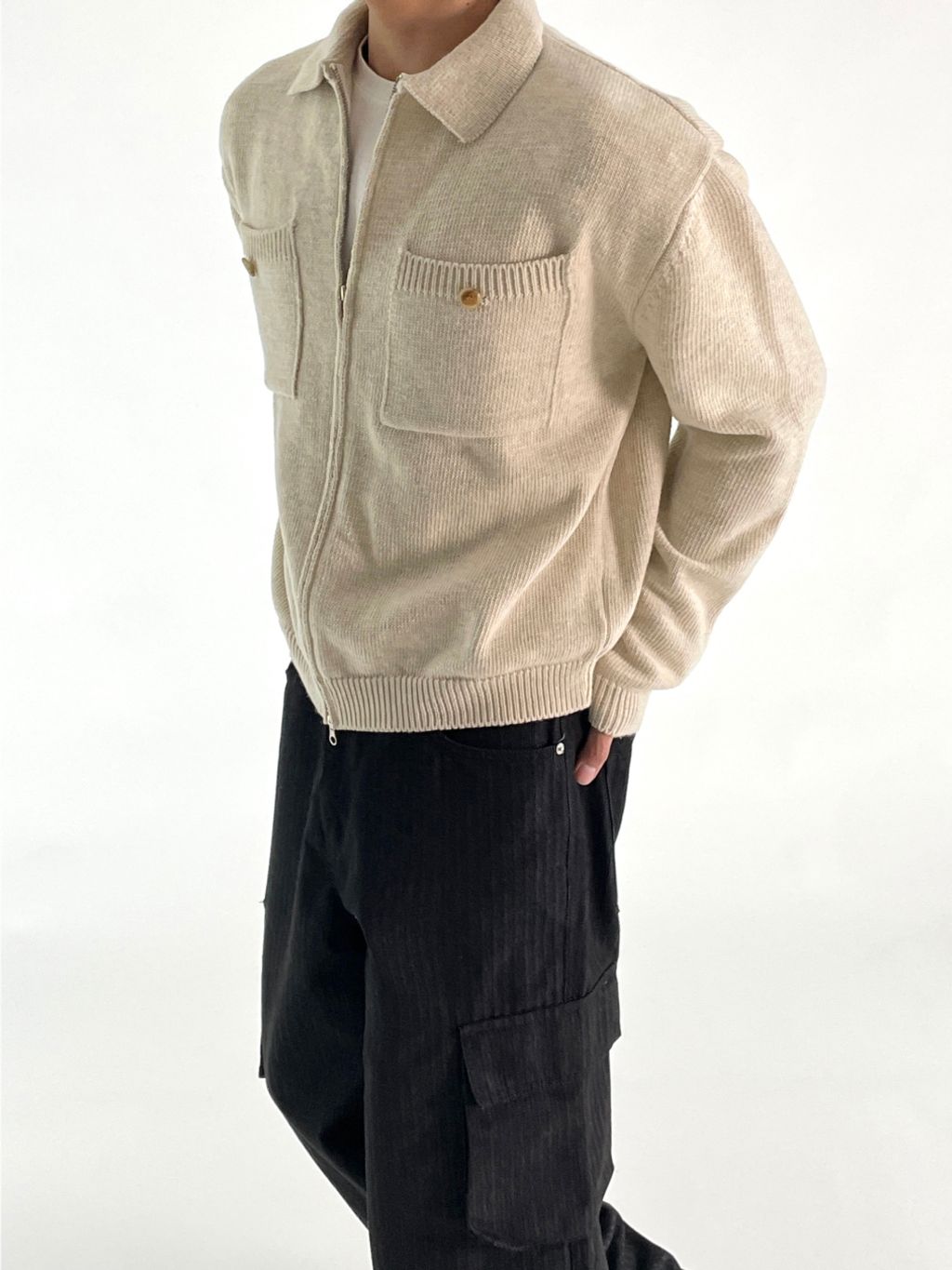 雙口袋針織外套